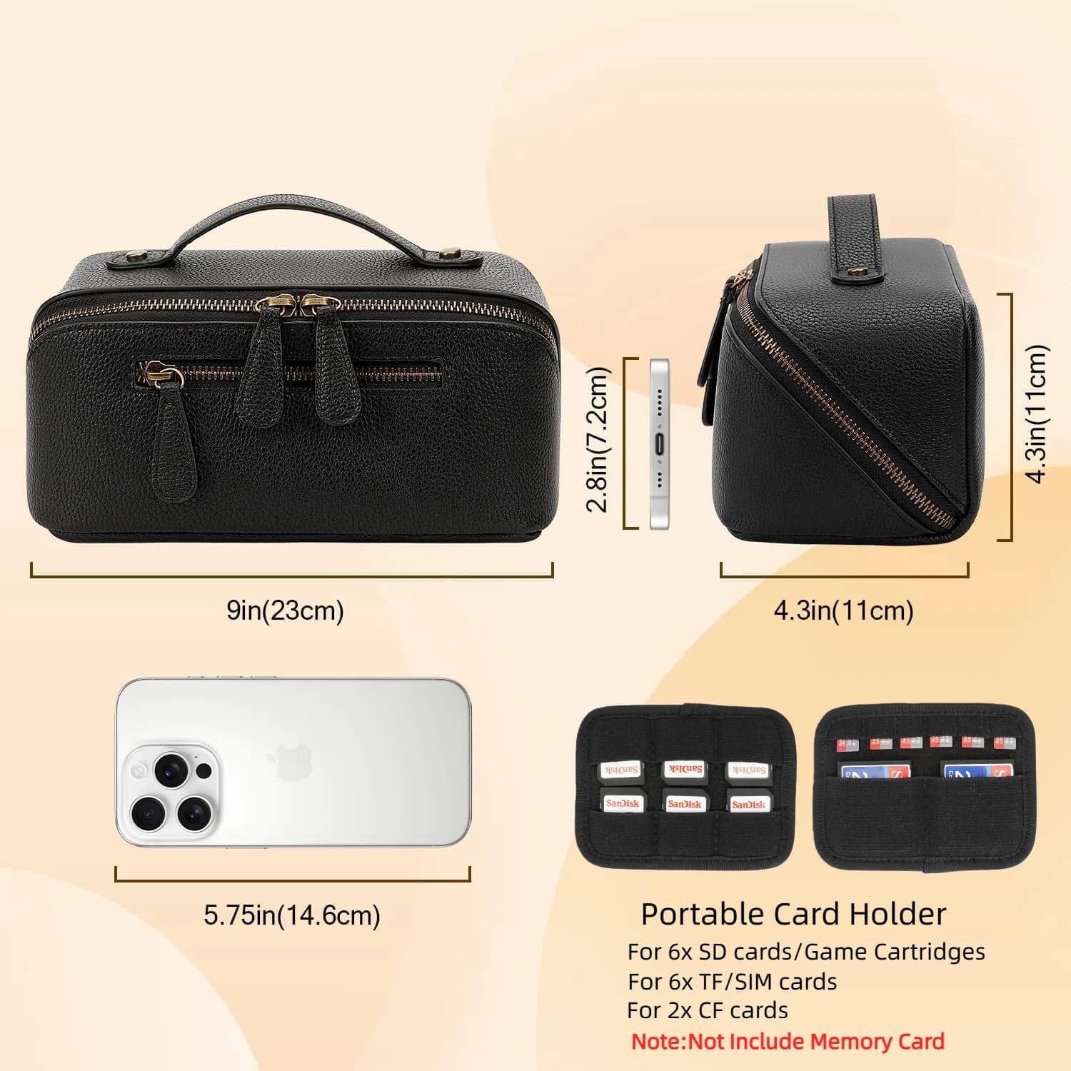 Tech Pouch helps you stay organized at all times:Tired of tangled cords? Perfect for travel and commutes, this organizer stores a large amount of electronics, offering smart storage and easy access anywhere. 9.8”x4.3”x4.3”.with Removable Card Slots for USB Adapter, Memory Card