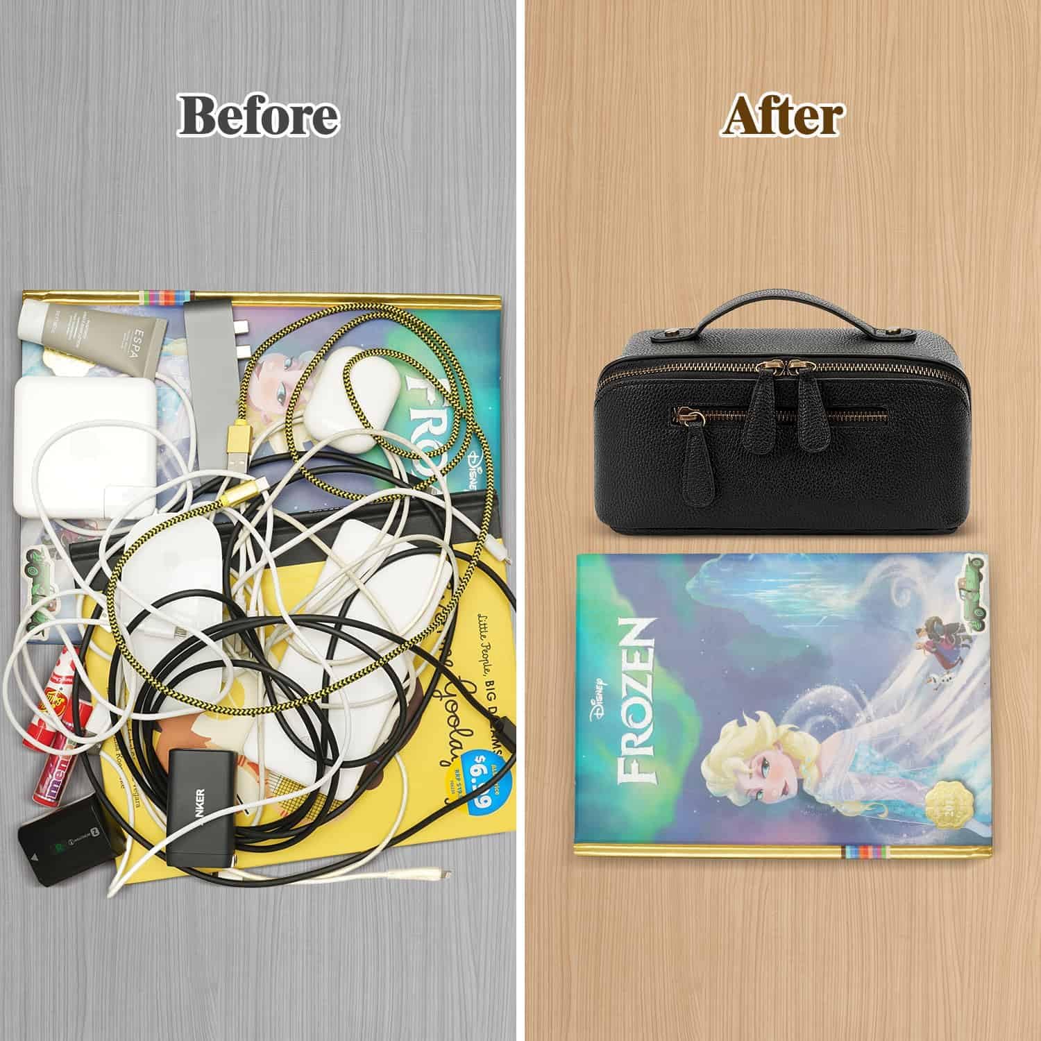 180° Lay-Flat Design for Instant Access: This bag opens fully like a book, laying all your essentials flat. No more digging through a black hole. Perfectly organize and instantly find your chargers, power banks, cables, earbuds, and other gadgets