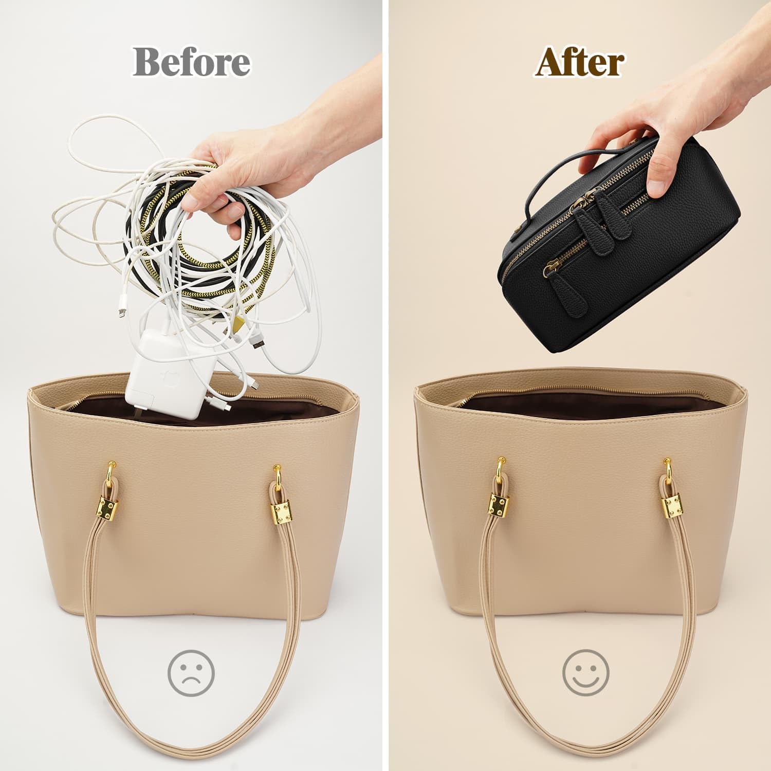 Orderly Storage:This Organizer Features 24 different compartments or pockets for MacBook chargers, cables, USB-C hubs, SSD, and more. Plus, a removable panel keeps SD cards and USB dongles secure, offering complete all-in-one storage