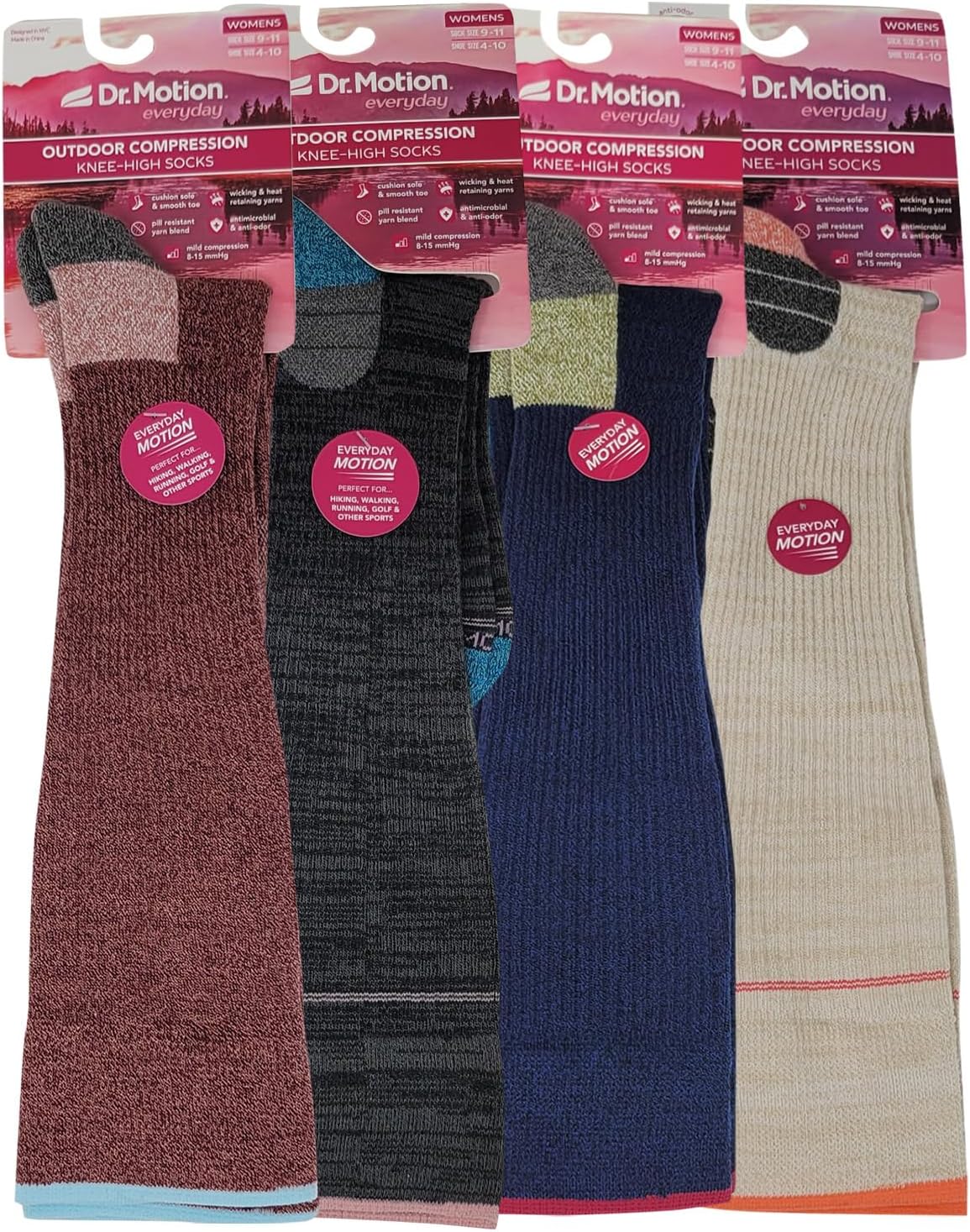 Dr. Motion women outdoor hiking compression socks deliver exceptional support for a range of activities, including hiking, skiing, cycling, gym workouts, and sports. Engineered for lasting comfort and durability, these socks help improve circulation, reduce muscle fatigue, and keep your feet dry and energized. Whether exploring rugged trails or engaging in high-intensity workouts, they offer reliable performance to keep you going all day long. Perfect for both casual adventurers and serious athletes,