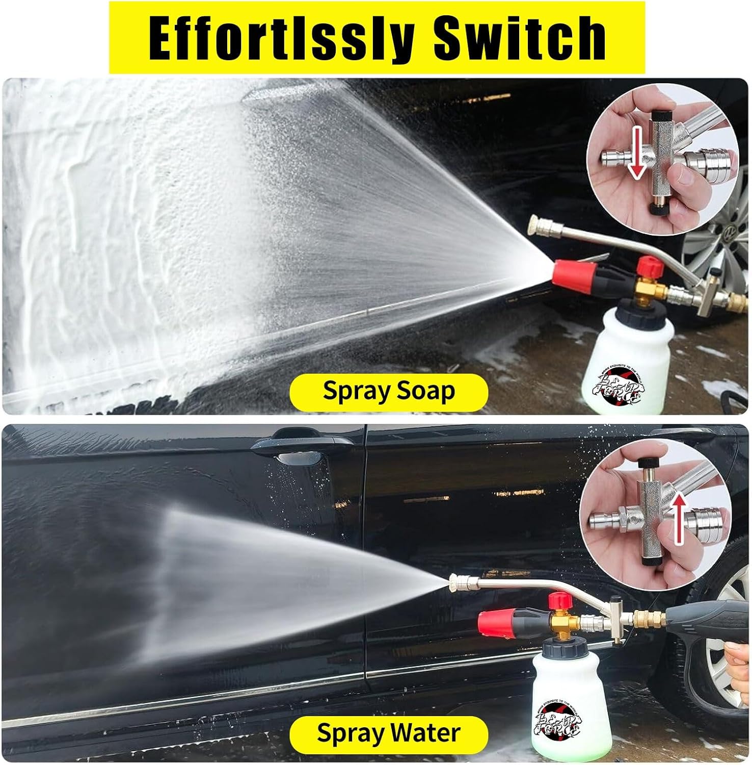 APPLICATION: Ideal for motorcycle and car washing, cleaning roofs, driveways, and siding, as well as washing floors and windows, it proves to be the ultimate product for detailing trucks or SUVs. Experience a new dimension of cleanliness with our innovative foam blaster dual-connector accessory.