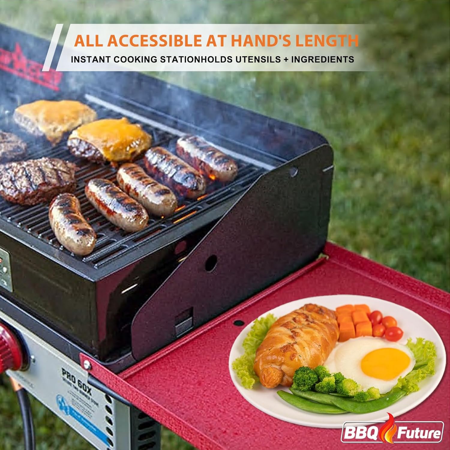 Dual-Purpose Foldable Design: These versatile shelves instantly transform into protective lids when folded, shielding burners from dust, debris, and harsh weather. When open, they deliver 16 inches of extra prep/storage space (set includes 2 shelves) for utensils, cookware, or ingredients—keeping essentials within arm’s reach.