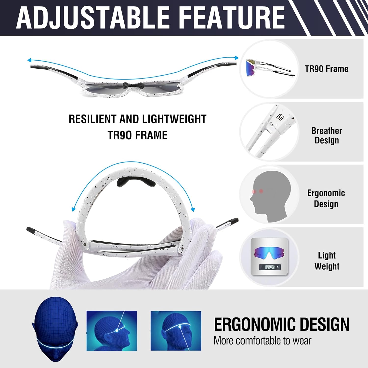【SUPER LIGHTWEIGHT FRAME 】- Made of lightweight and durable TR90 material, not only very lightweight but also extremely durable. You will not feel any discomfort during long time sports activity.
