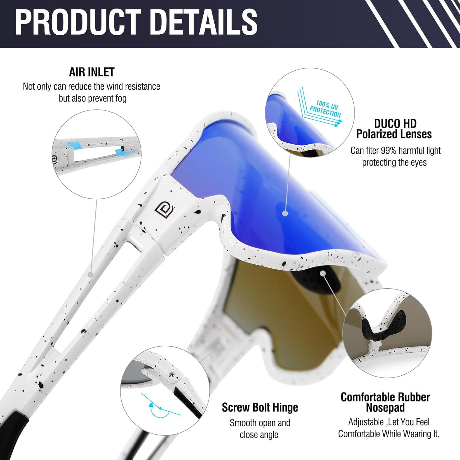 【HIGH CONTRAST LENS TECH】-With 20 years functional glasses manufacture experience, DUCO invented high contrast lens tech which makes the vision more clear and reduces eye fatigue, the lens are also scratch and impact resistant.