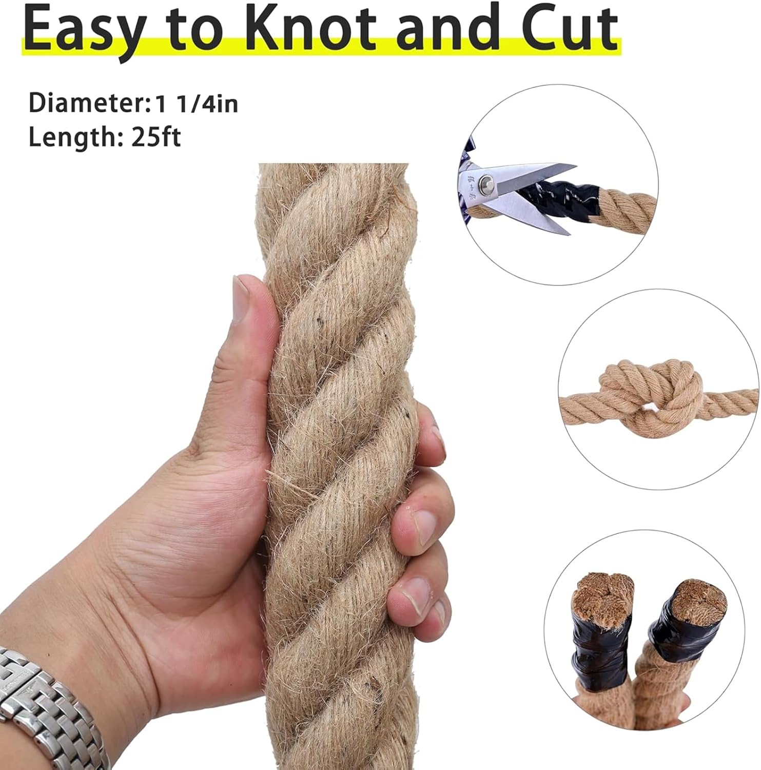 【Multiple Size Options】According to different usage scenarios, our jute rope is available in a variety of diameters and lengths respectively 1/2inch (12mm),5/8inch (16mm), 3/4inch (20mm), and 1inch (26mm), and the lengths include 50 ft. and 100 ft. You can choose the right size according to your needs