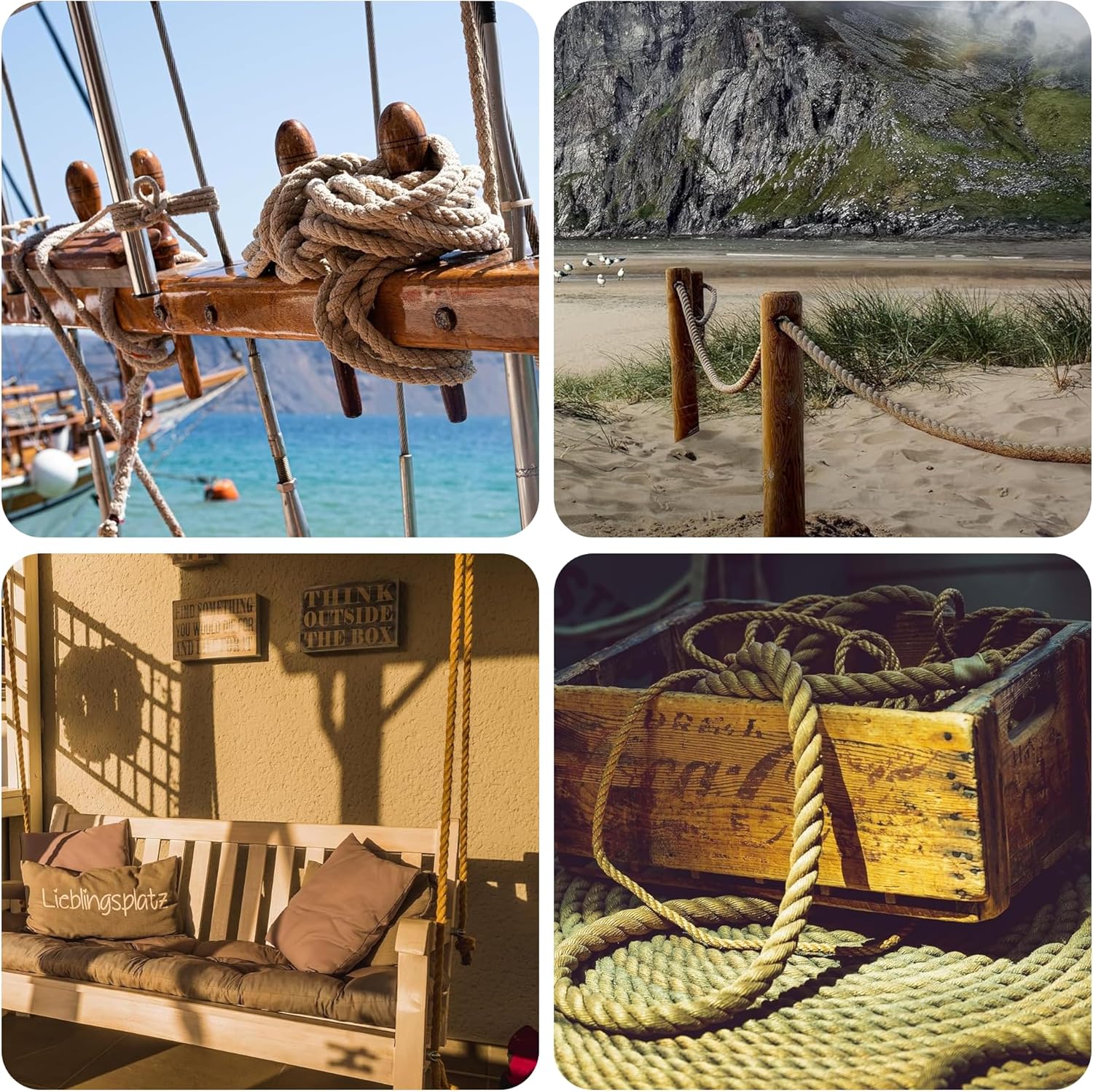 【Wide Application】Our jute twine is suitable for a variety of indoor and outdoor projects. Indoors, it can be used for crafts, cat scratching post, home decoration,Landscaping,etc. Outdoors, it is perfect for gardening, hanging flower baskets, swing bed hanging, camping,shop decoration, seawall fencing and other scenes