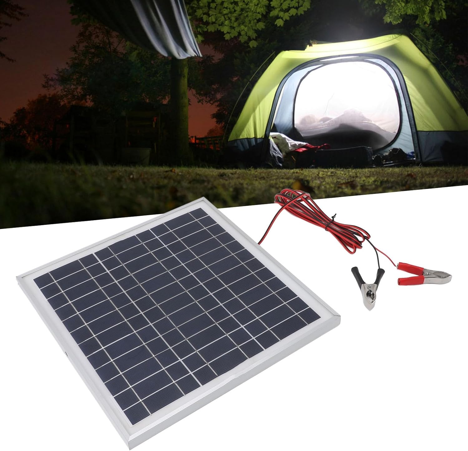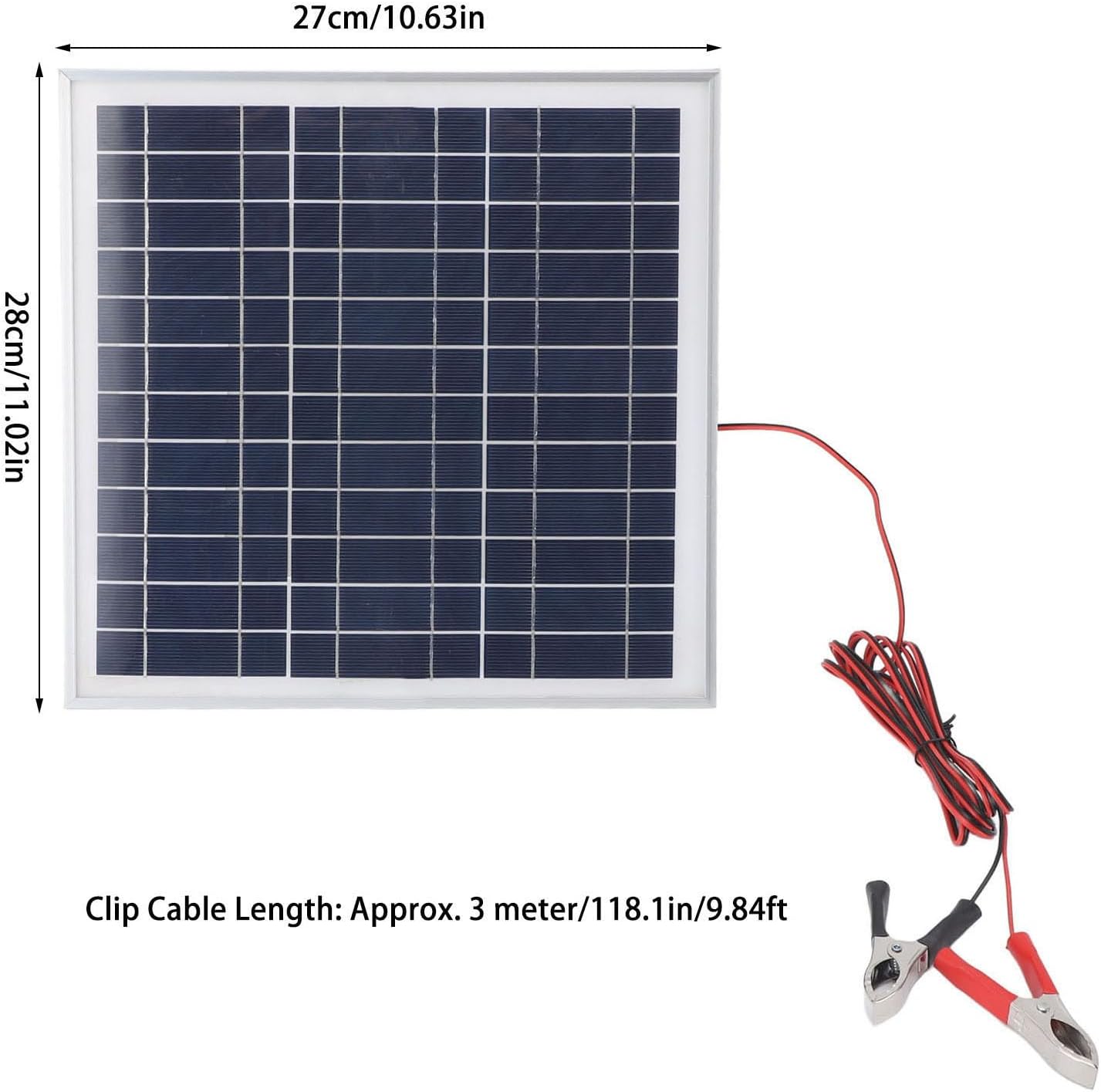 Item Type: Solar Panel Material: Aluminum, monocrystalline silicon Weight: Approx. 446.00g/15.73oz Solar Panel Size: Approx. 27x28cm/10.63×11.02in Solar Panel Power: 50W (no battery storage function) Clip Connection Voltage: DC 18V Clip Cable Length: Approx. 3 meter/118.1in/9.84ft Applicable Scenes: Camping, hiking, outdoor charging, etc. Packing List: 1 x Solar Panel