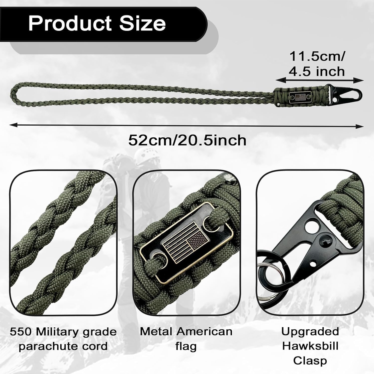 【Heavy-Duty Braided Lanyards】Crafted from 550 nylon paracord for strength and flexibility. Features a rugged HK-style zinc alloy hook with rust-resistant black coating, tough enough for outdoor use, EDC gear, and daily carry.