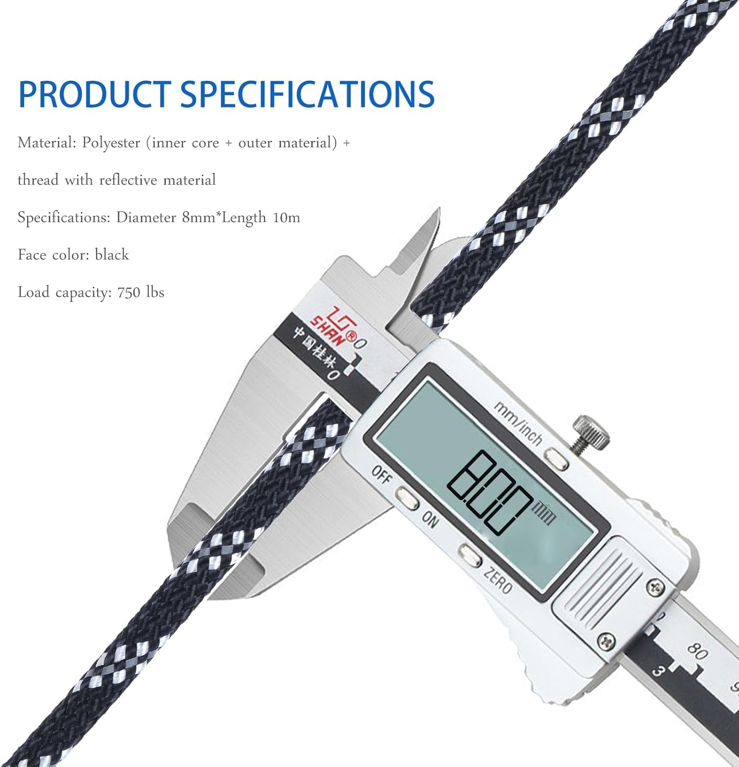 【Size】Military rope Diameter: 8mm, Length: 10M, 7 cores: 7 nylon threads, weighs only 0.35kg, can be turned around for compact storage. The surface of military paracord is smooth and has a good tactile feel