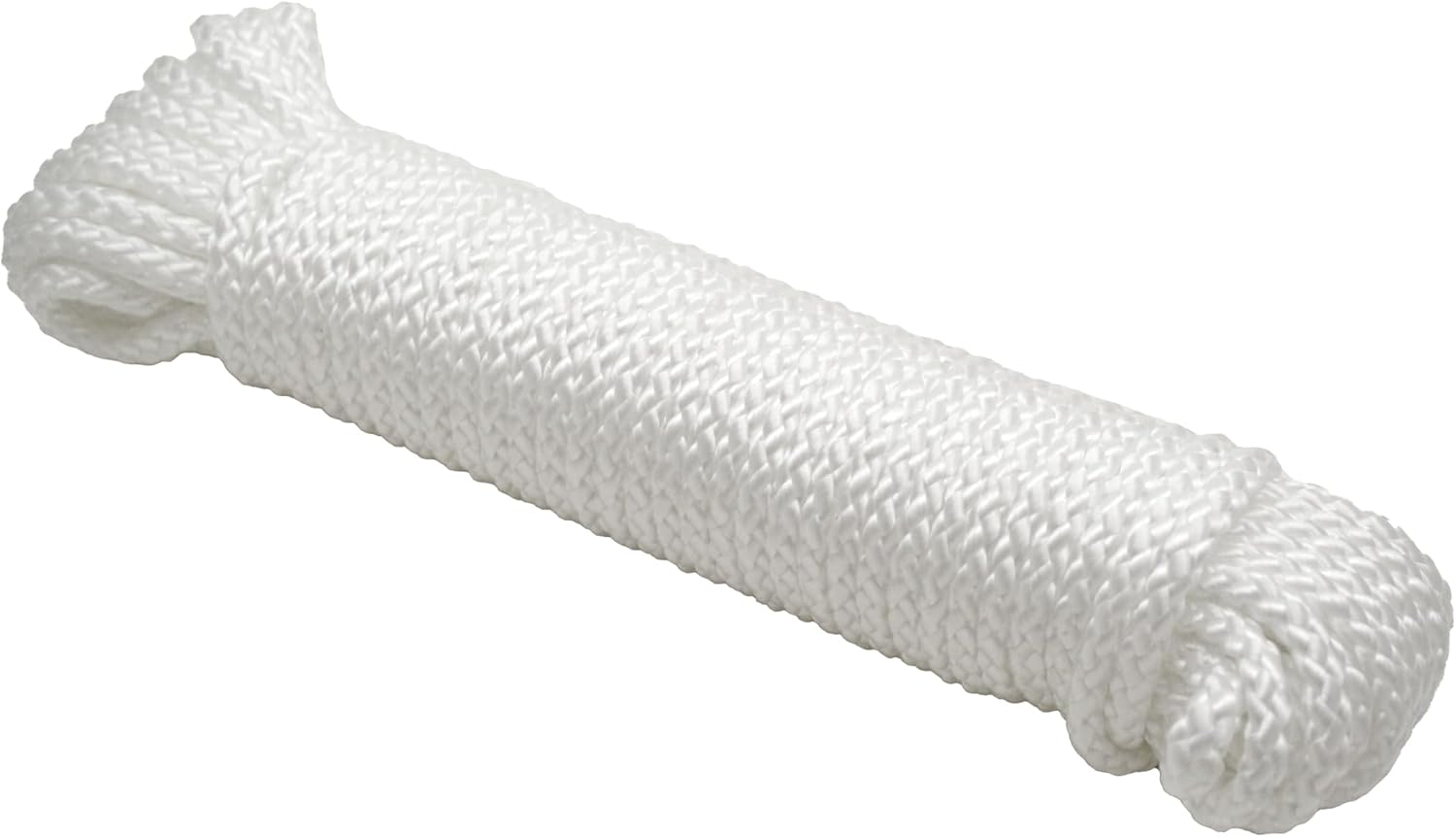 This rope is 50′ (15.2 m) long and has a diameter of 0.25″ (6.4 mm), making it useful as a tie-down rope, clothesline, and other outdoor uses..