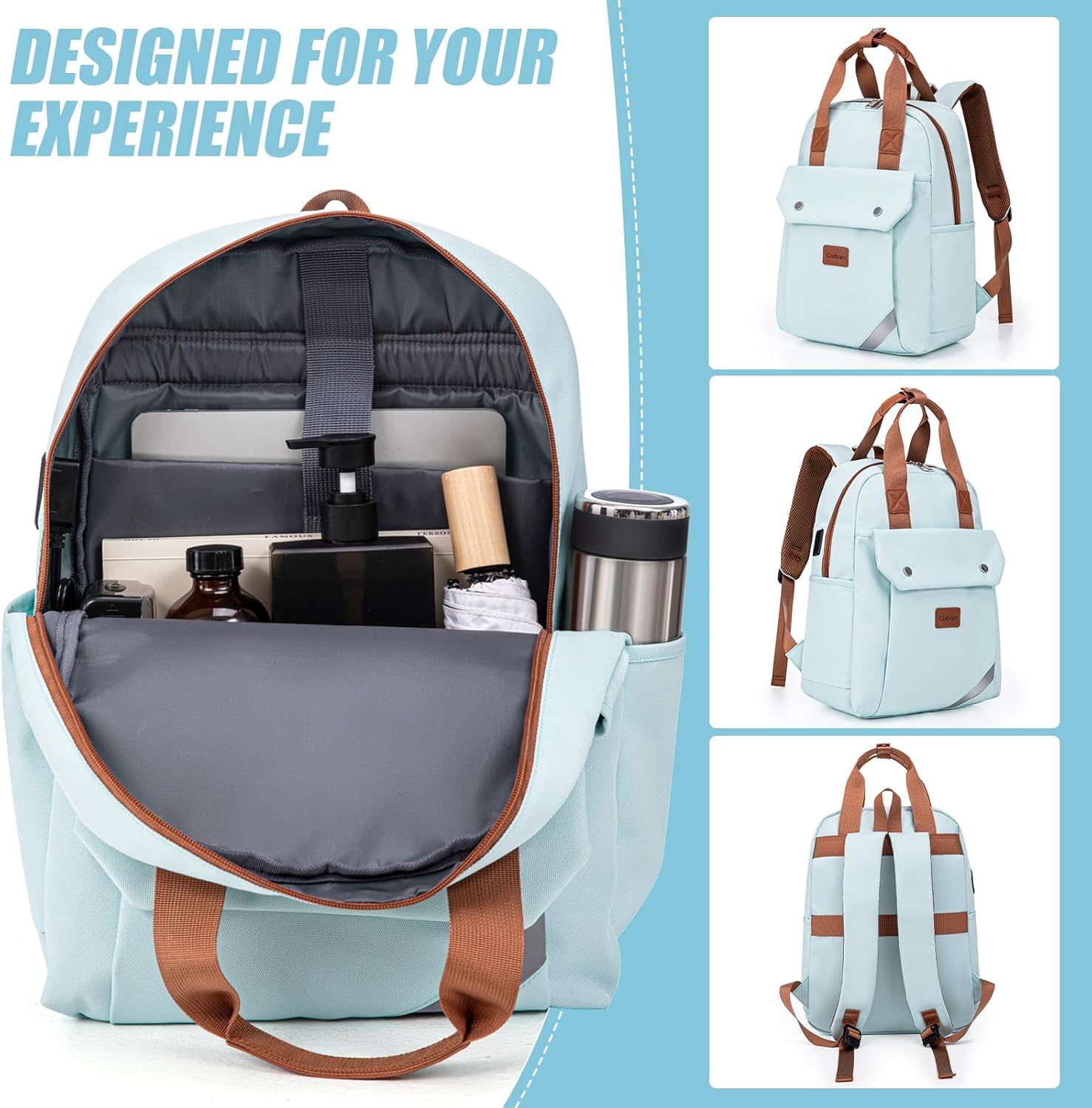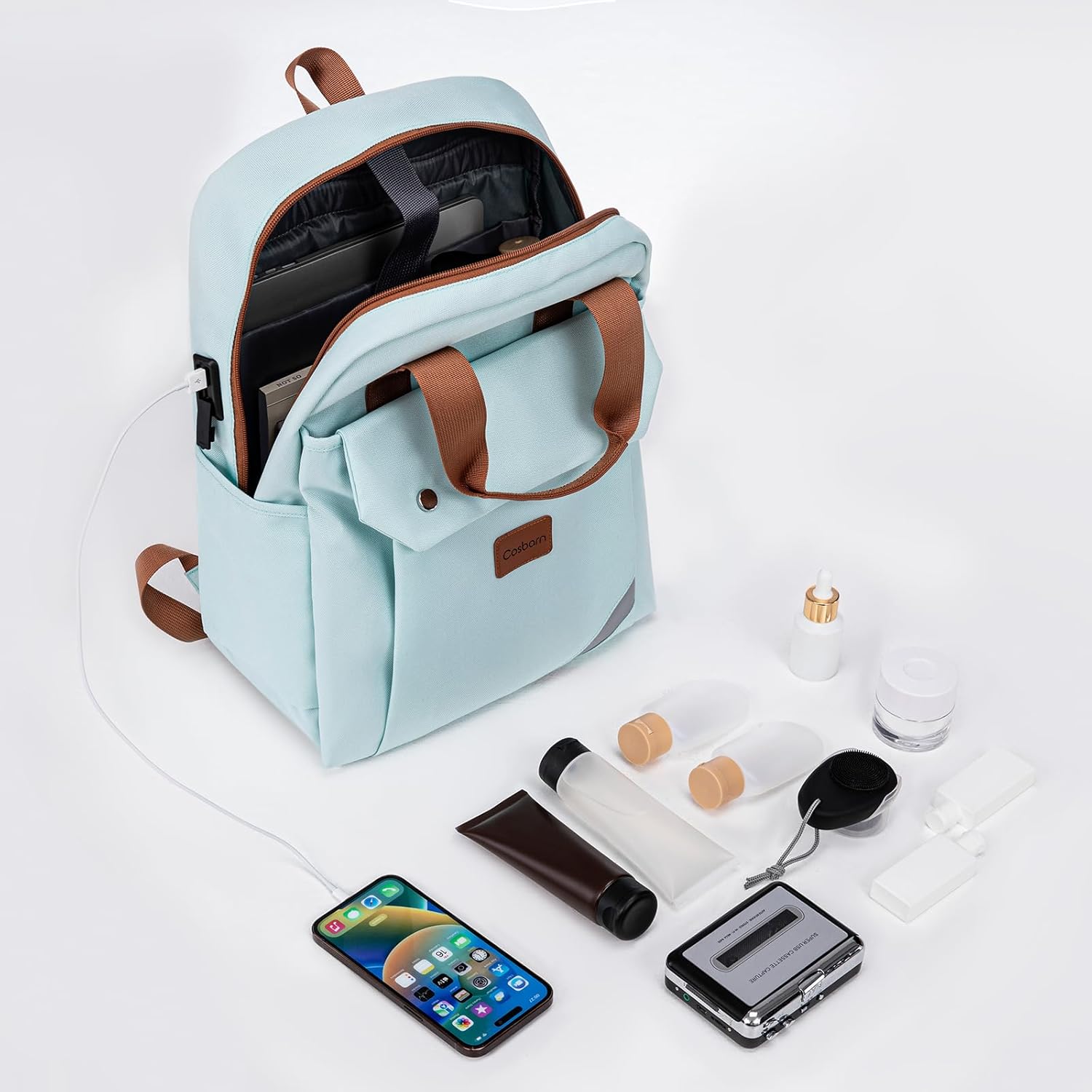External USB Port:Cosbarn Travel Backpack, featuring an external USB port, makes it easy to stay connected and powered. (Note: Rechargeable battery is excluded). The backpack has reflective strips on the surface, escorting the night traveling