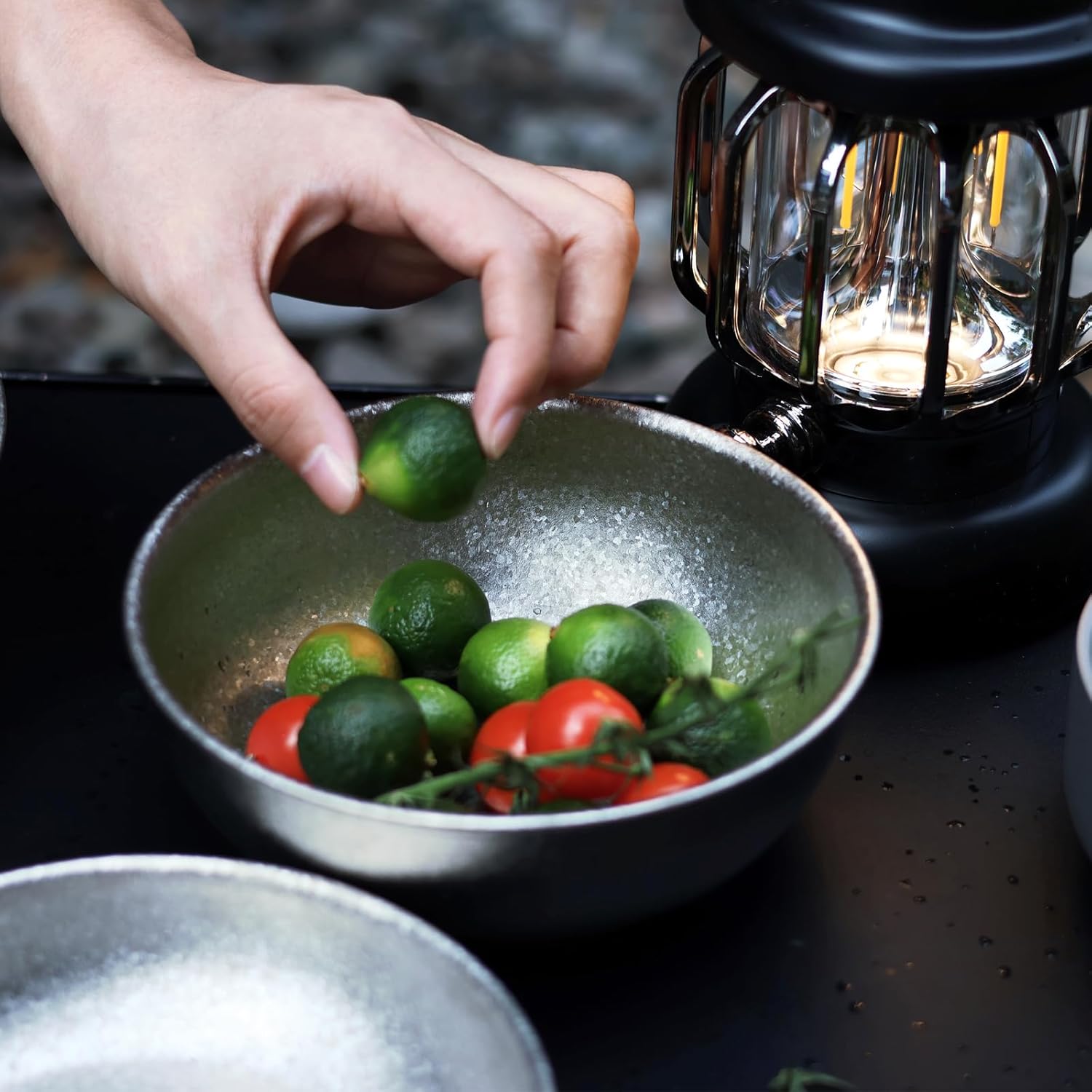 𝐕𝐞𝐫𝐬𝐚𝐭𝐢𝐥𝐞 𝐂𝐚𝐩𝐚𝐜𝐢𝐭𝐲: With a capacity of 800ml, our titanium crystallized camping bowl offers ample space for your meals, ensuring you can enjoy hearty servings even in the wilderness. Its large capacity also makes it ideal for sharing meals with friends or family during group camping trips.