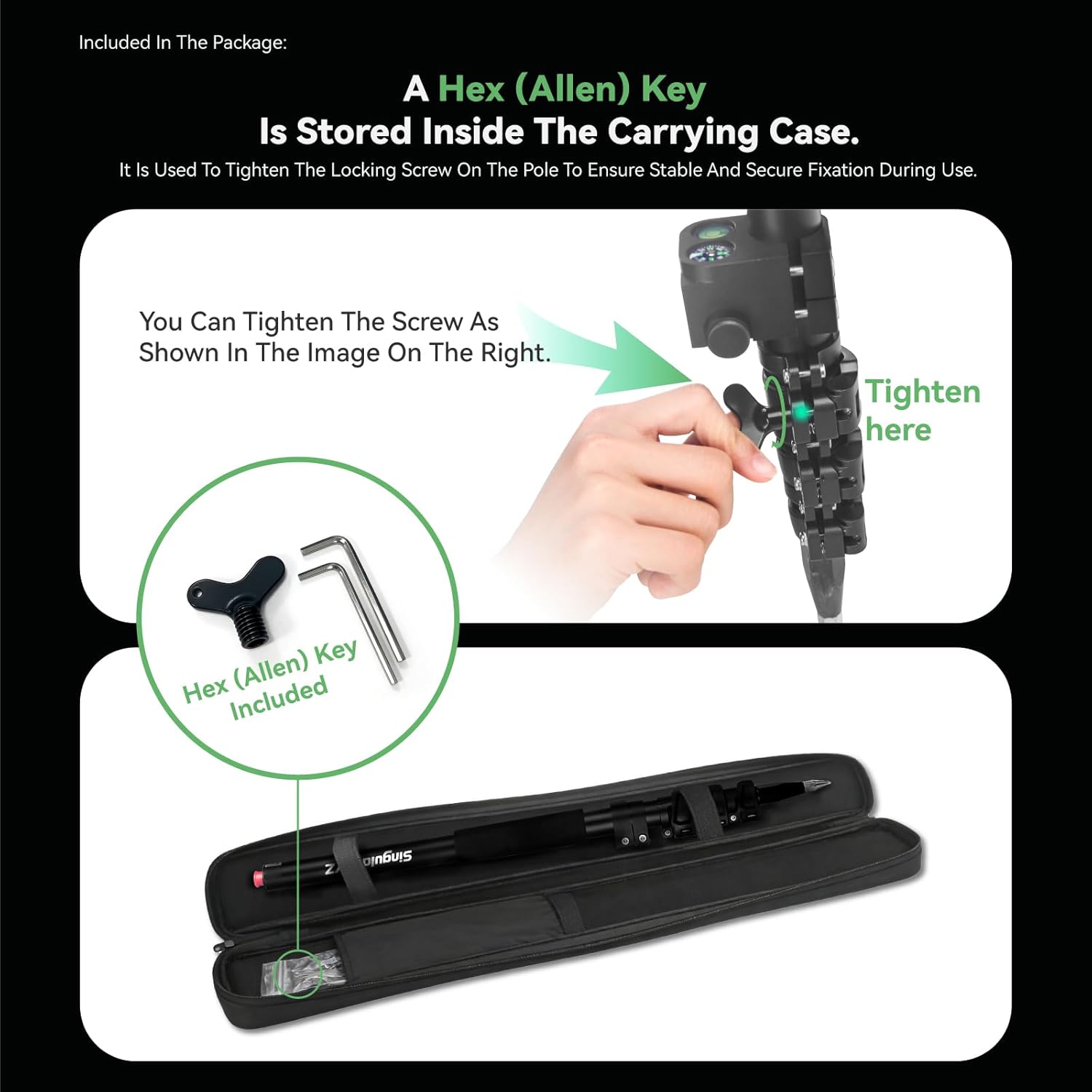 Versatile Height Adjustment: SingularXYZ surveying pole offers secure, multi-position height locking within the 1.6m/5.24ft to 1.8m/5.91ft range, enabling rapid adaptation to diverse project requirements.