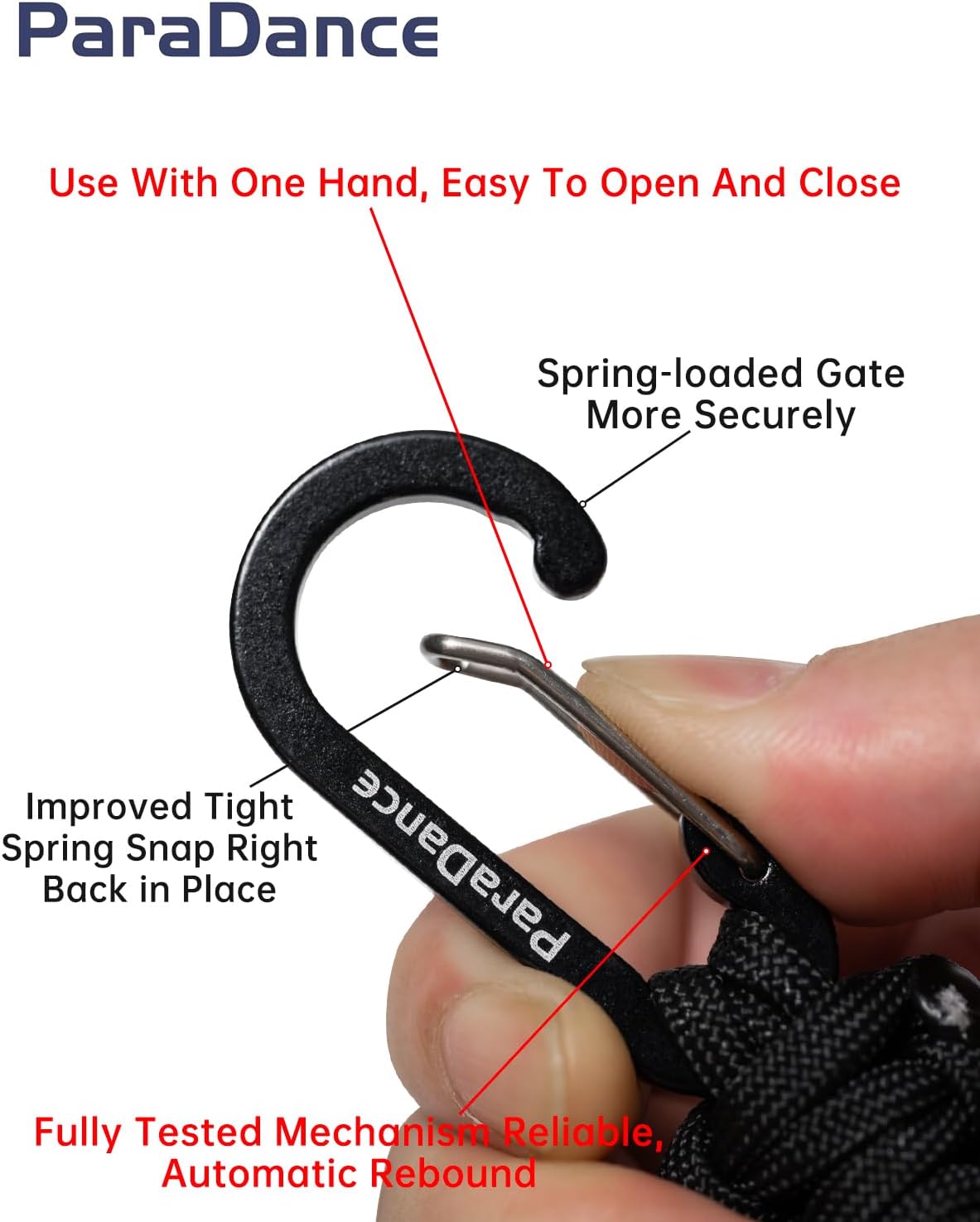4.Improved High Quality Spring for Clip — Improved spring of carabiners allow them to be quickly and securely attached to a wide range of fixing points. It works smoothly as the spring-loaded gate makes it easy to attach important items to a pack or belt, etc.