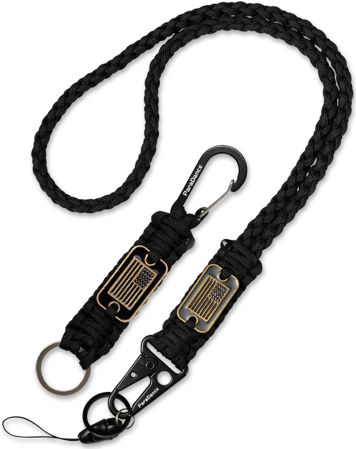 This lanyard is braided from 550 paracord and features a cool USA flag. Comes with a carabiner and key ring, which can be used to hang garmin alphas/telescopes and other heavy objects. Small items such as keys/wallet/whistle/ID badges/phone can be hung on the string.