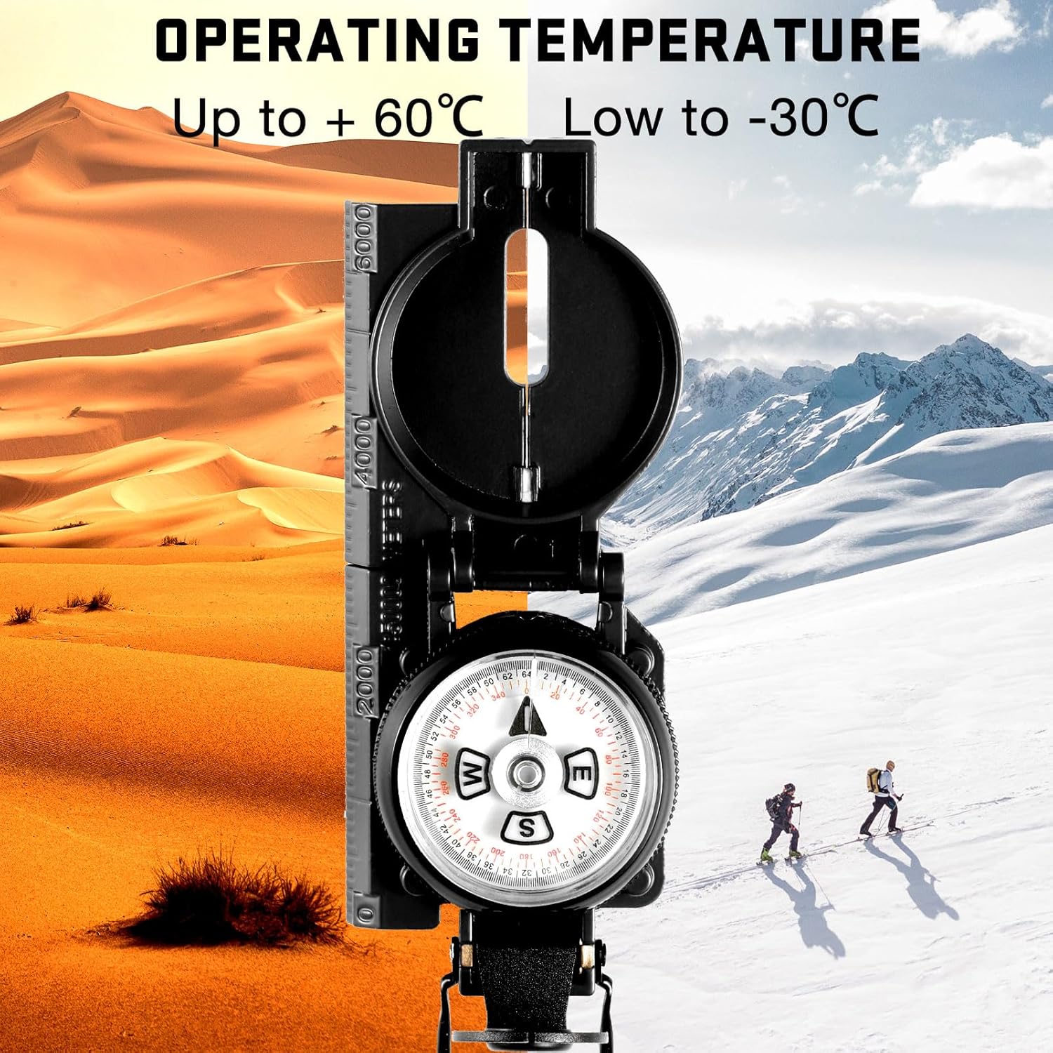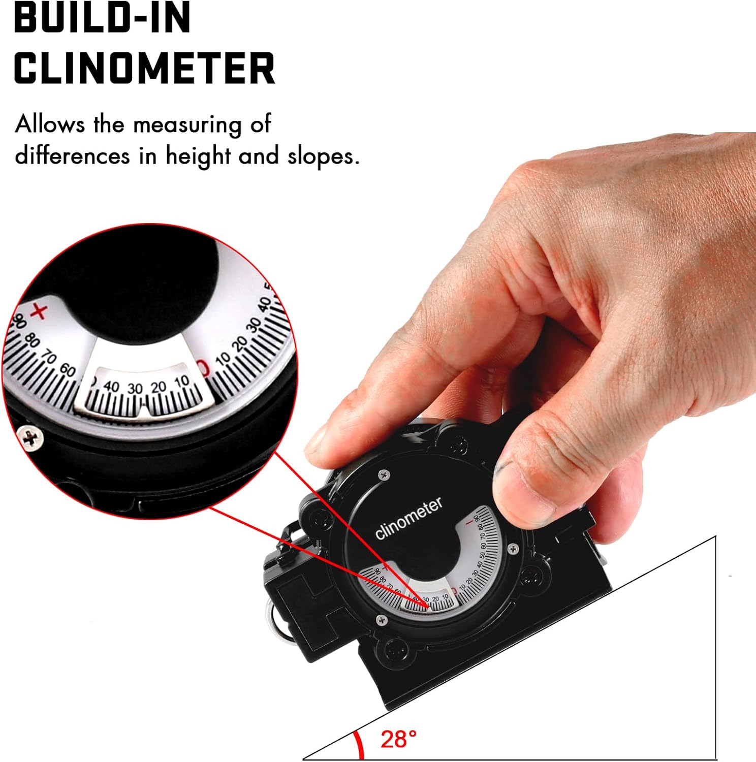 【Built-in Clinometer】- The Eyeskey Multifunctional Military Sighting Navigation Compass comes equipped with a clinometer, allowing you to measure the angle of slope, elevation, and avalanche hazards while engaging in outdoor activities such as mountain climbing, backcountry skiing, or hiking steep slopes. This feature ensures your safety and enables you to make informed decisions in challenging terrains.