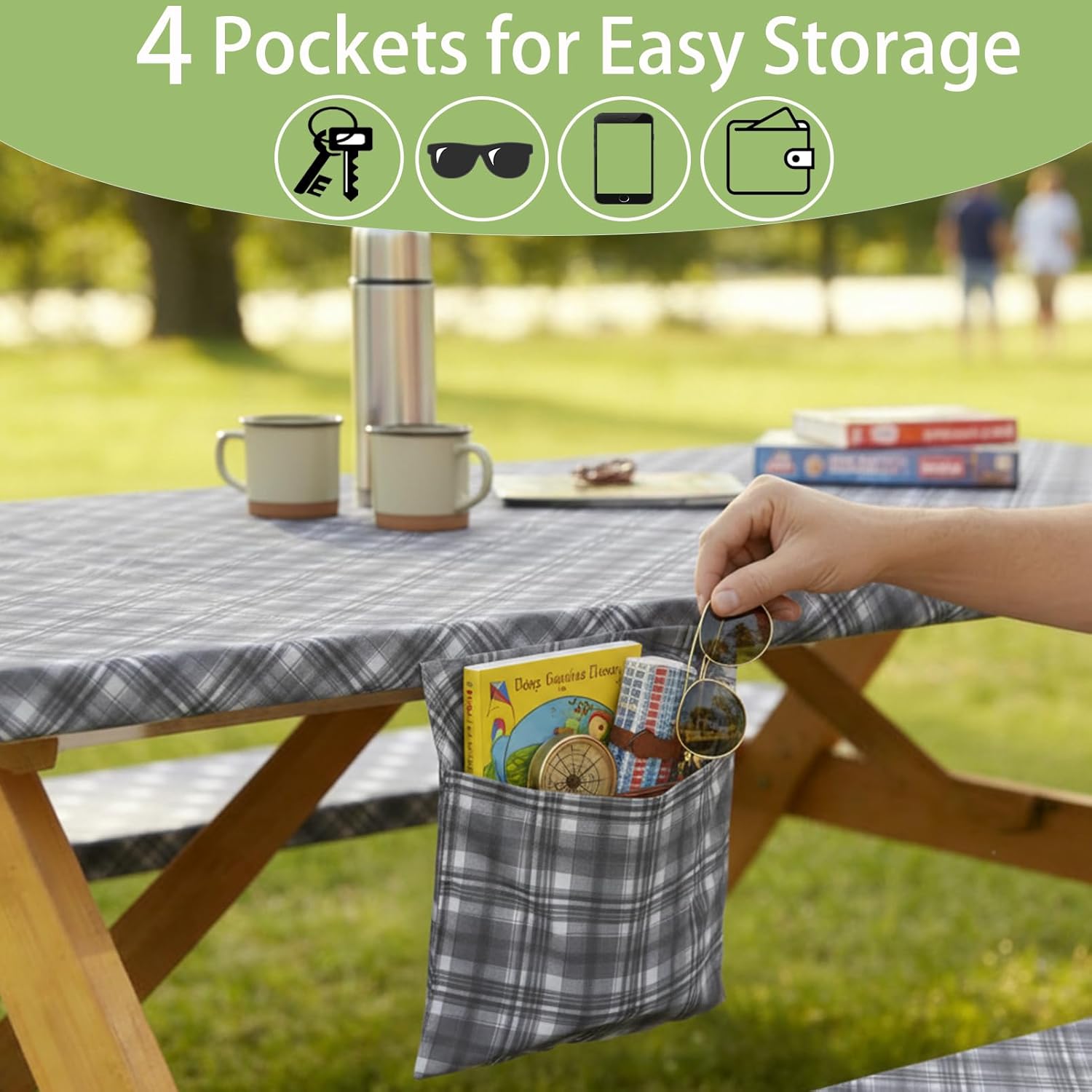 Utility Pockets & Portable Carry Bag: Built-in storage pockets on both sides of the table cover offer convenient space to hold phones, keys, napkins and other small essentials – keeping your items within easy reach. The set also comes with a carry bag, allowing you to fold and store the table cover set neatly, which saves space in backpacks, RVs or car trunks. Perfect for all your outdoor adventures