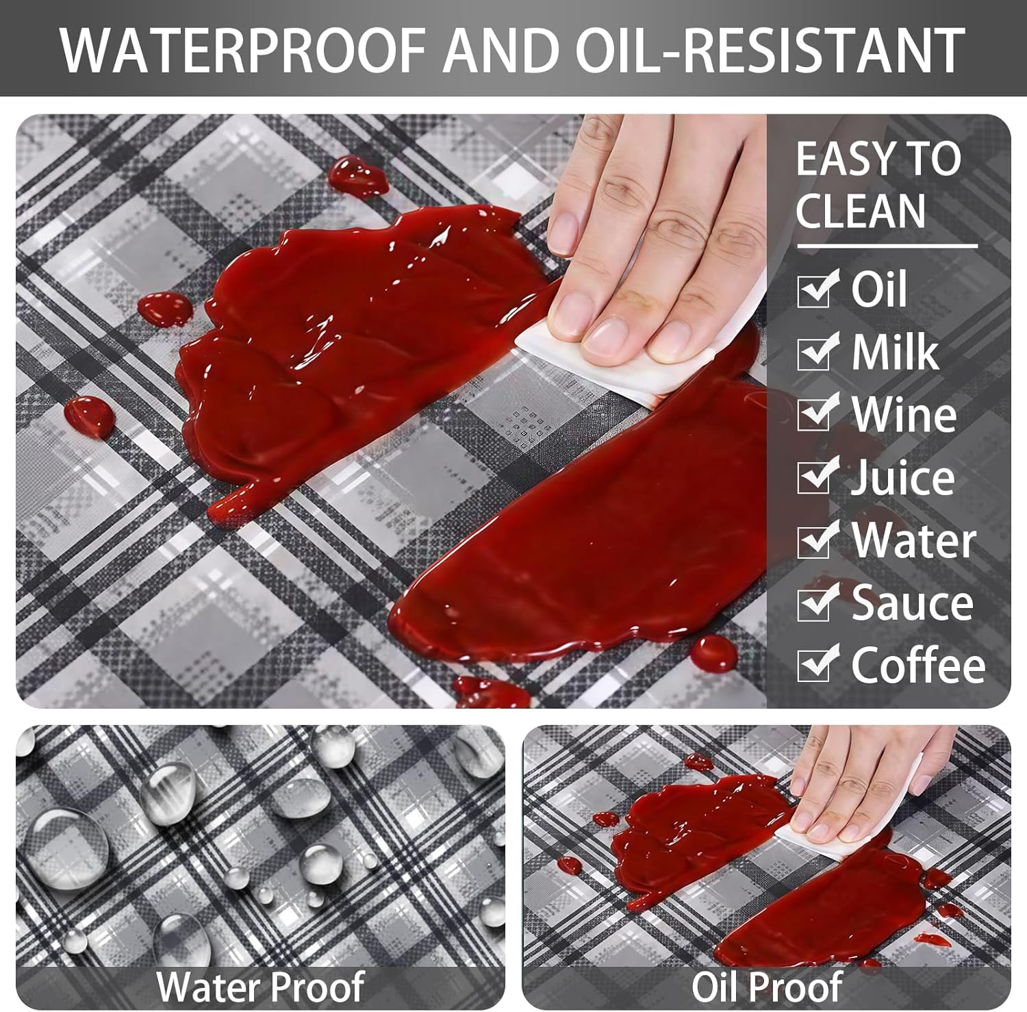 Premium Waterproof & Oilproof, Easy Clean & Care: Made of waterproof and oilproof fabric, this outdoor table cover effectively prevents liquid penetration and stops stains from spreading. For accidental spills, simply wipe it clean with a damp cloth in seconds,no tedious washing steps required.(Note: Do not bleach. Store the table cover properly when not in use for a long time to extend its service life.)