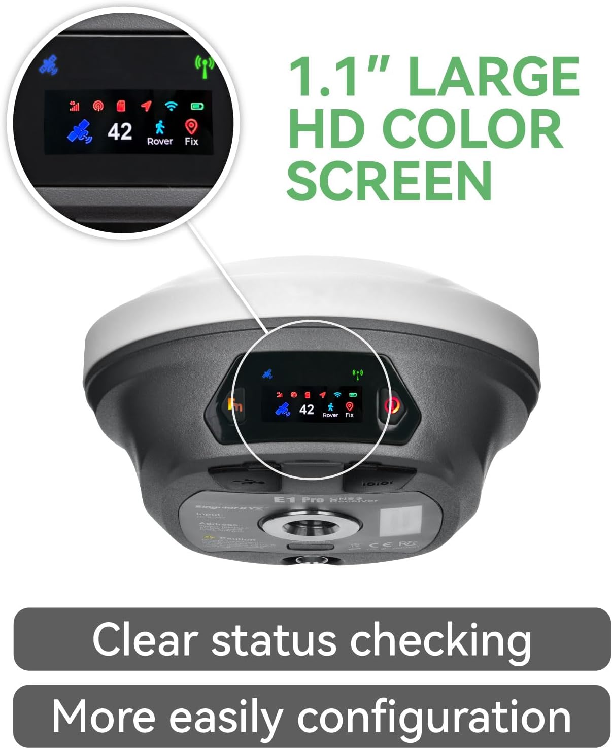 1.1″ HD Display: The E1 Pro gnss rtk has ultra-bright, high-res display cuts through glare like a champ. Check real-time data, tweak settings, or review survey stats under full sun—no squinting required.