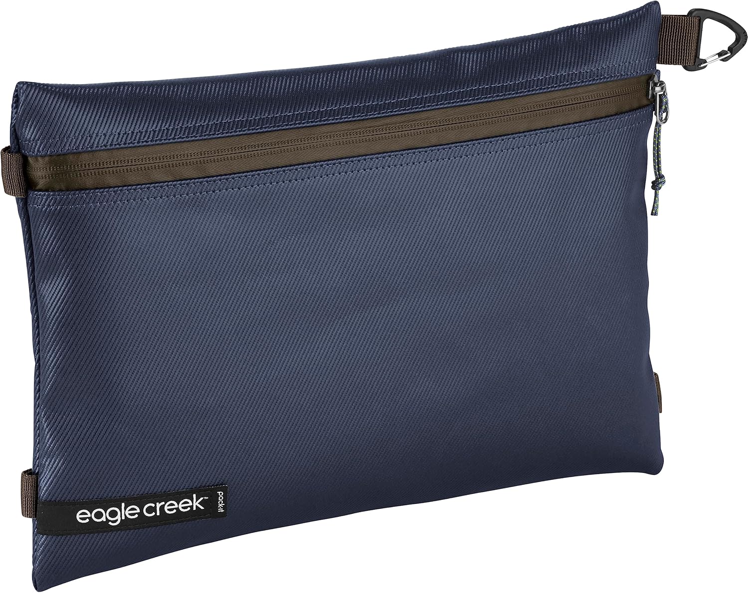 Built for those who require durability, organization, and versatility in their gear, the Eagle Creek Pack-It Gear Pouch is your go-to travel pouch for everything from casual camping trips to rugged expeditions. Whether you’re organizing tools, keeping your toiletries and tech dry, or storing campsite essentials, this multi use pouch is designed to keep small items organized and keep items secure, no matter where you roam. Constructed with strong, PVC free, recycled polyester, this sustainable gear pouch is built to last and protects against wear, water, and rough handling. Its water-resistant coating makes it a great wet gear pouch or protective travel pouch. This durable tool storage bag adapts seamlessly to your needs and can be used as anything from a camping pouch to an ideal tool bag, and beyond. Compact yet spacious, it’s the perfect compact storage bag to tuck into your backpack, luggage, or duffel. The lightweight travel pouch includes an easy-to-grip climbing rope-inspired zipper pull and an external triangle snap-hook that allows it to be used as a luggage attachment pouch for quick access and easy handling. Whether you’re heading off-grid or staying organized on the go, the Eagle Creek Pack-It Gear Pouch delivers capacity, repairability, and long lasting performance. Use it as a travel essentials bag, pouch organizer, travel gear pouch, or as your everyday travel accessory. It’s a versatile storage pouch made for real-world adventures. For nearly 50 years, Eagle Creek has been committed to equipping travelers with the most responsibly-designed, durably-built, functionally superior adventure travel bags, luggage, packs, organizers, and gear. This unwavering commitment continues to define our company’s mission to this day. Our No Matter What warranty has become a keystone promise for our community of travelers. Wherever your next adventure takes you, we have the solution to take your travels to the next level.