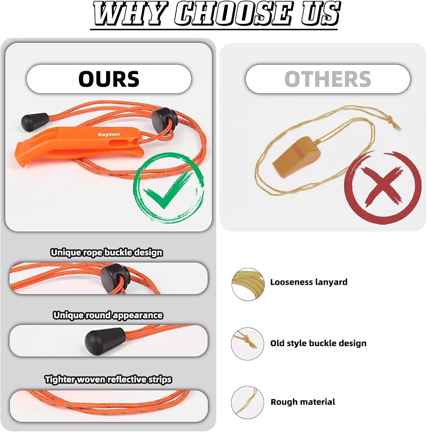 【Reflective Lanyard & Clip – Ideal Whistle for Life Jacket and Outdoor Use】