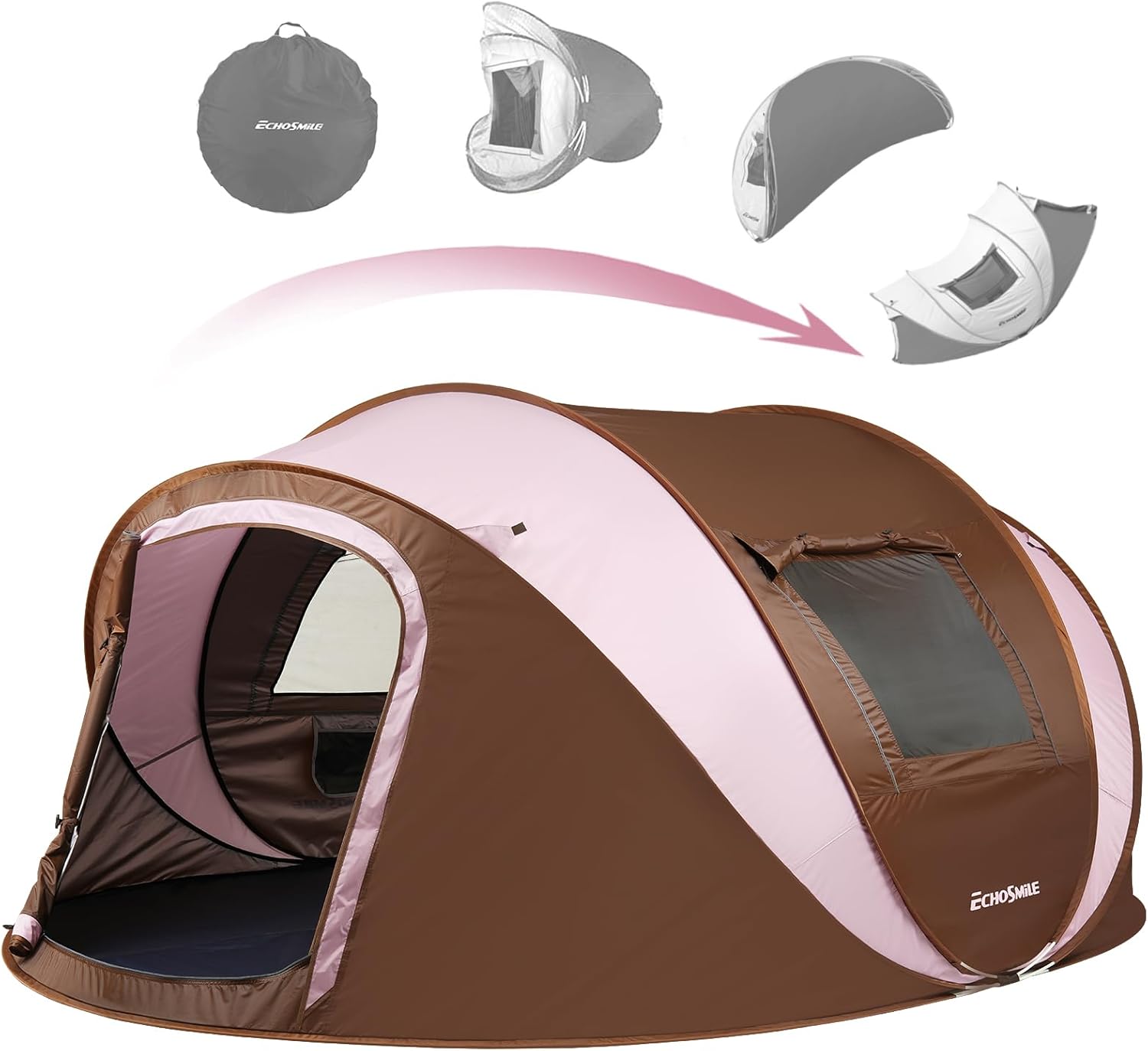 【QUICK & EASY SETUP】 Take the pop up tent out of the package, unstrap the tent, throw it into the air, it will be opened automatically in second. In just 10 seconds, our tent will bring you a pleasant camping experience.