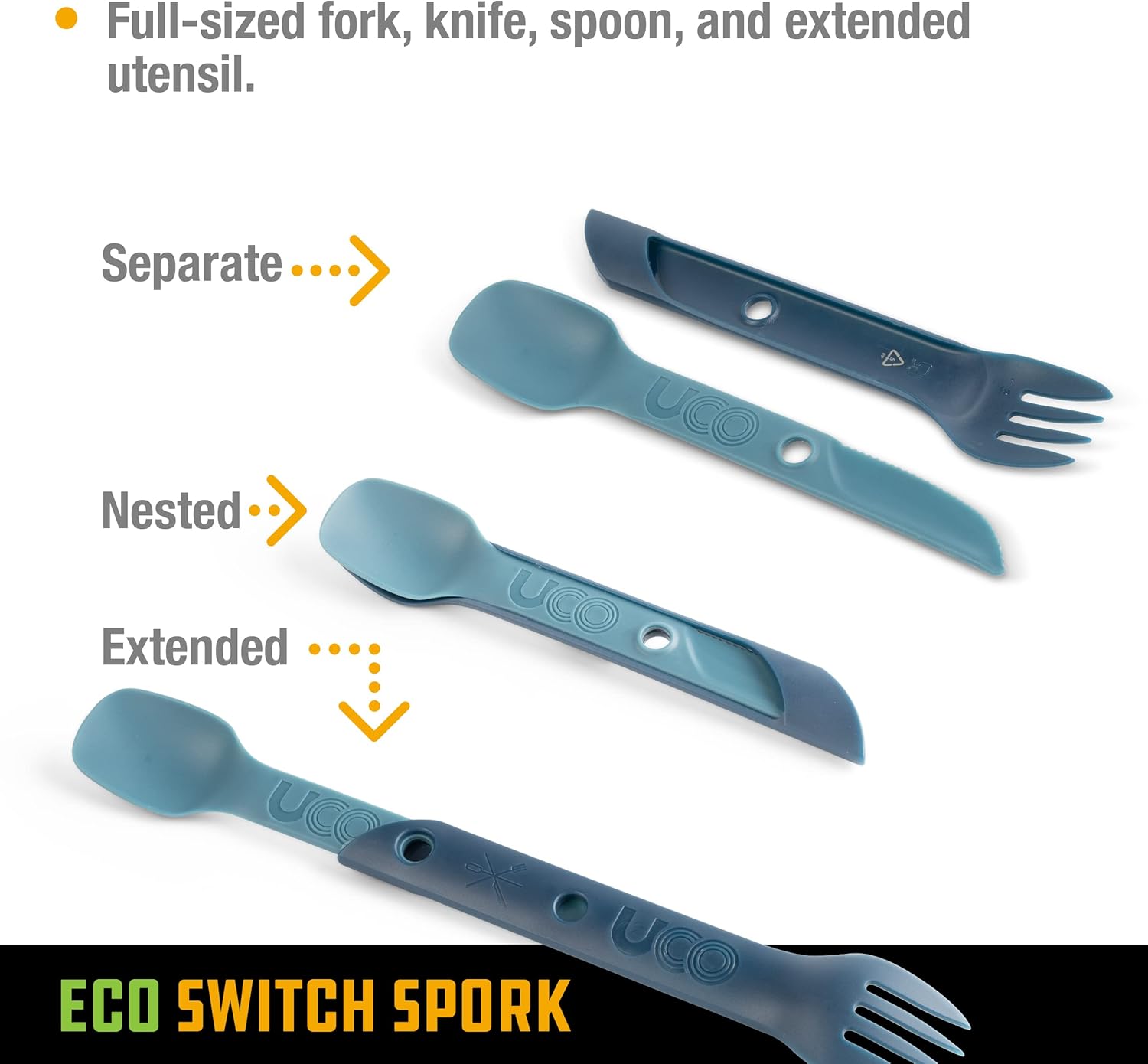 3-IN-1 CAMPING SPORK: No need to pack multiple camping cooking utensils – our Switch spork features a spoon on one end and a fork with a serrated knife edge on the other