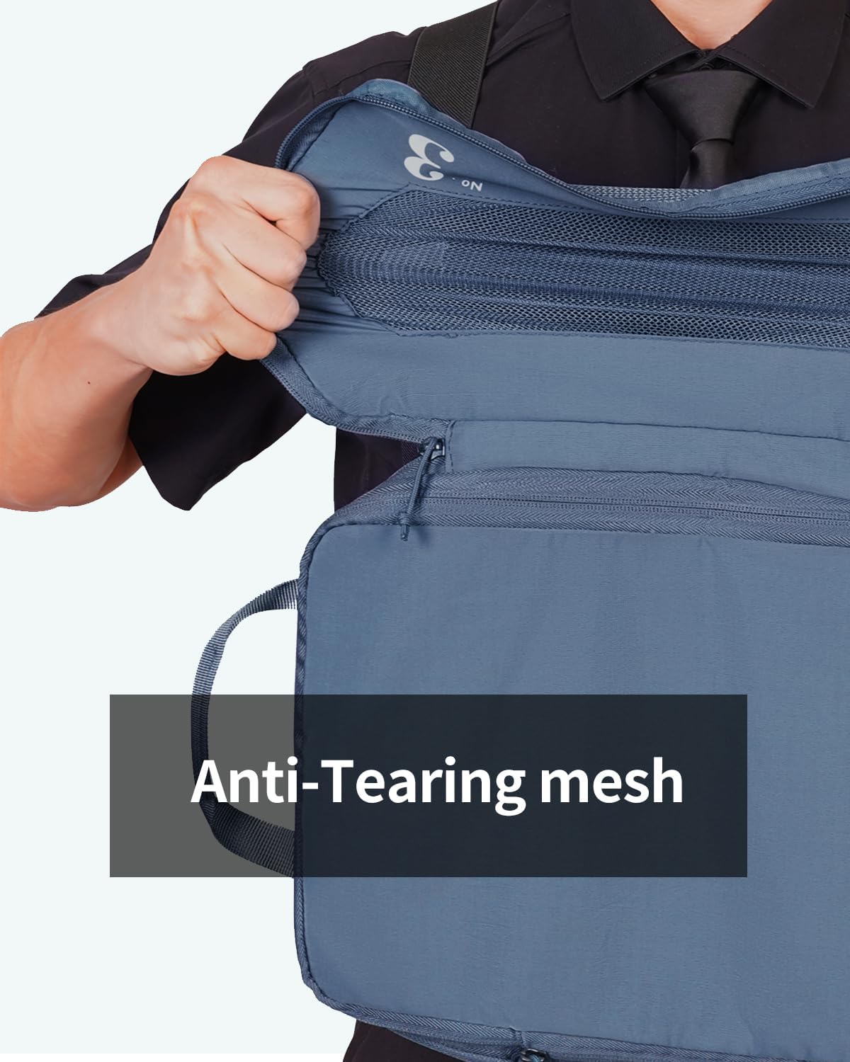 【Compression Design Save More Space】: ECOHUB compressible packing cubes come with an extra zippered section for content compression. Comprssion zippers allow 10cm expansion. Unzip the compressed part, then have room to expand and add more items later. Compression design saves you space inside your luggage by pressing the air out of mesh and zipping up. Adjust and maximize your packing space while keeping your items easily accessed.(PATENT PENDING)