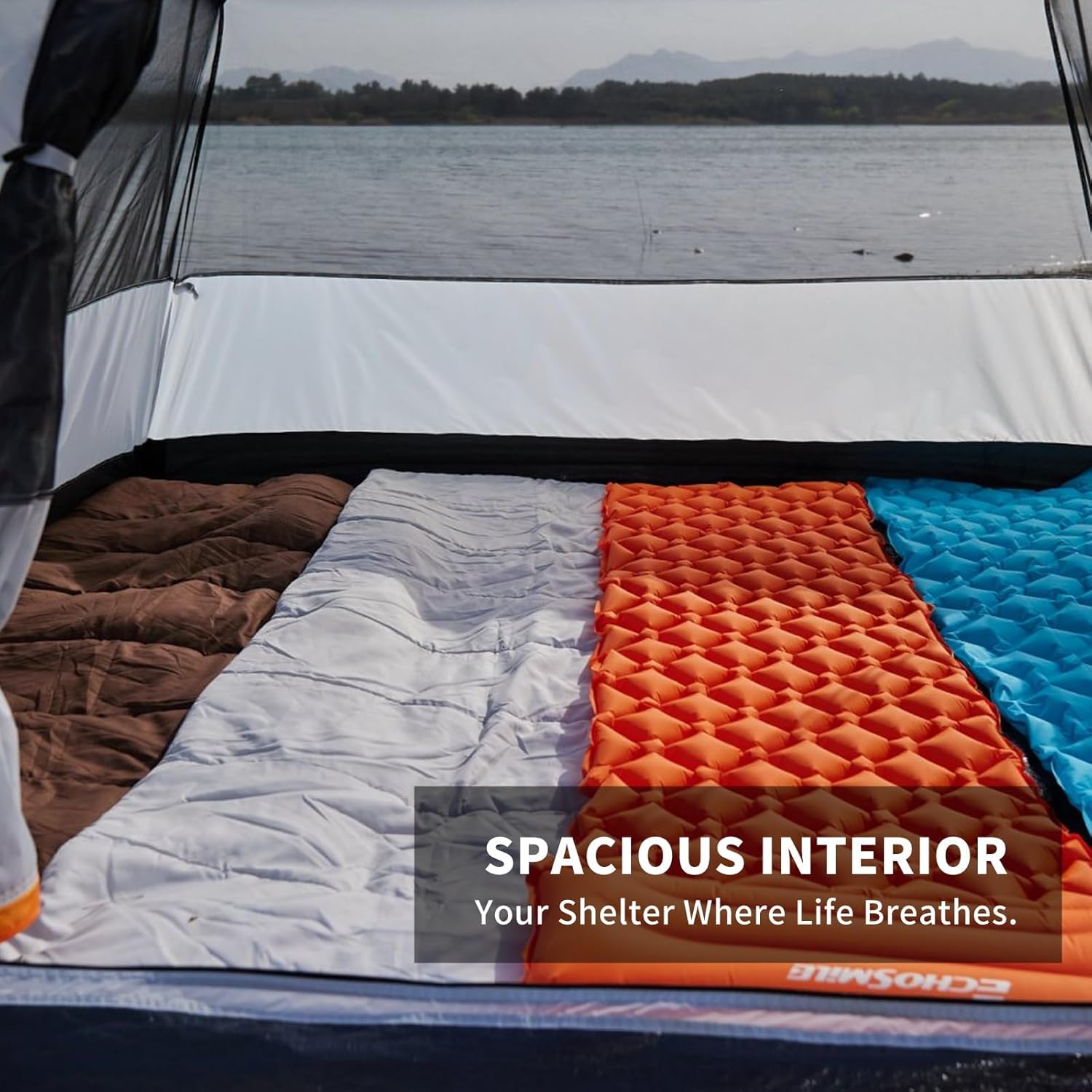 【Superior Waterproof & Windproof Protection】EchoSmile Crafted with a double-layer structure and high-quality rainfly, Using 190T polyester taffeta double-layer fabric, coated with waterproof PU coating, the waterproof effect reaches 2500mm, this tent provides dependable protection against rain, wind, and moisture. Waterproof taped seams and reinforced corners keep you dry and comfortable, even during sudden weather changes. Perfect for spring, summer, and fall adventures