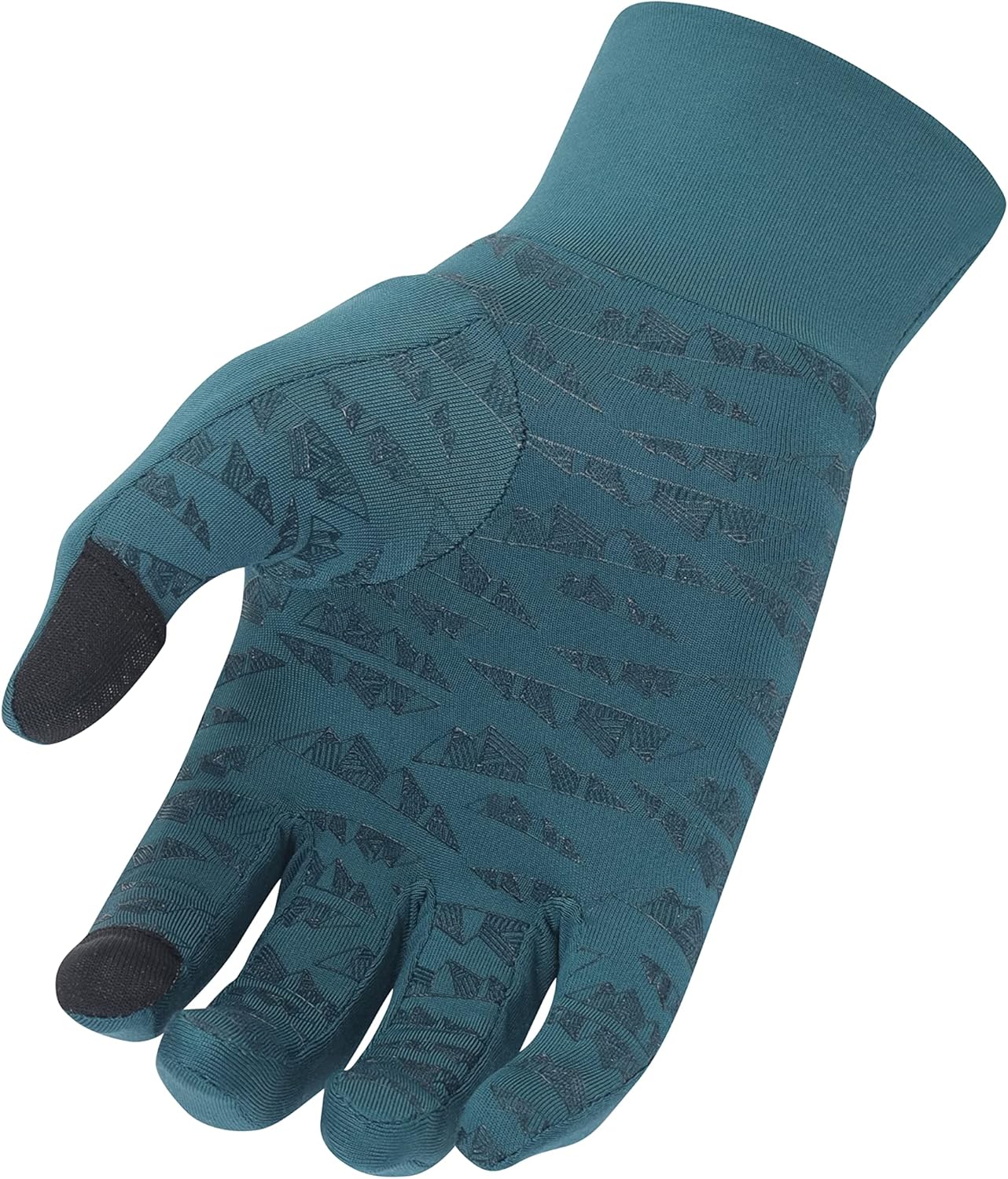 TOUCHSCREEN COMPATIBLE: This Eddie Bauer glove liner features a touch tip thumb and fore finger. The silicone mountain pattern adds a nice design to the grip palm.