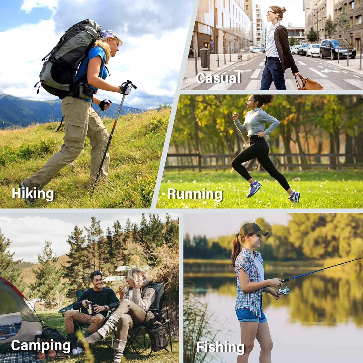 Day hikes, light trails, and casual outdoor activities.