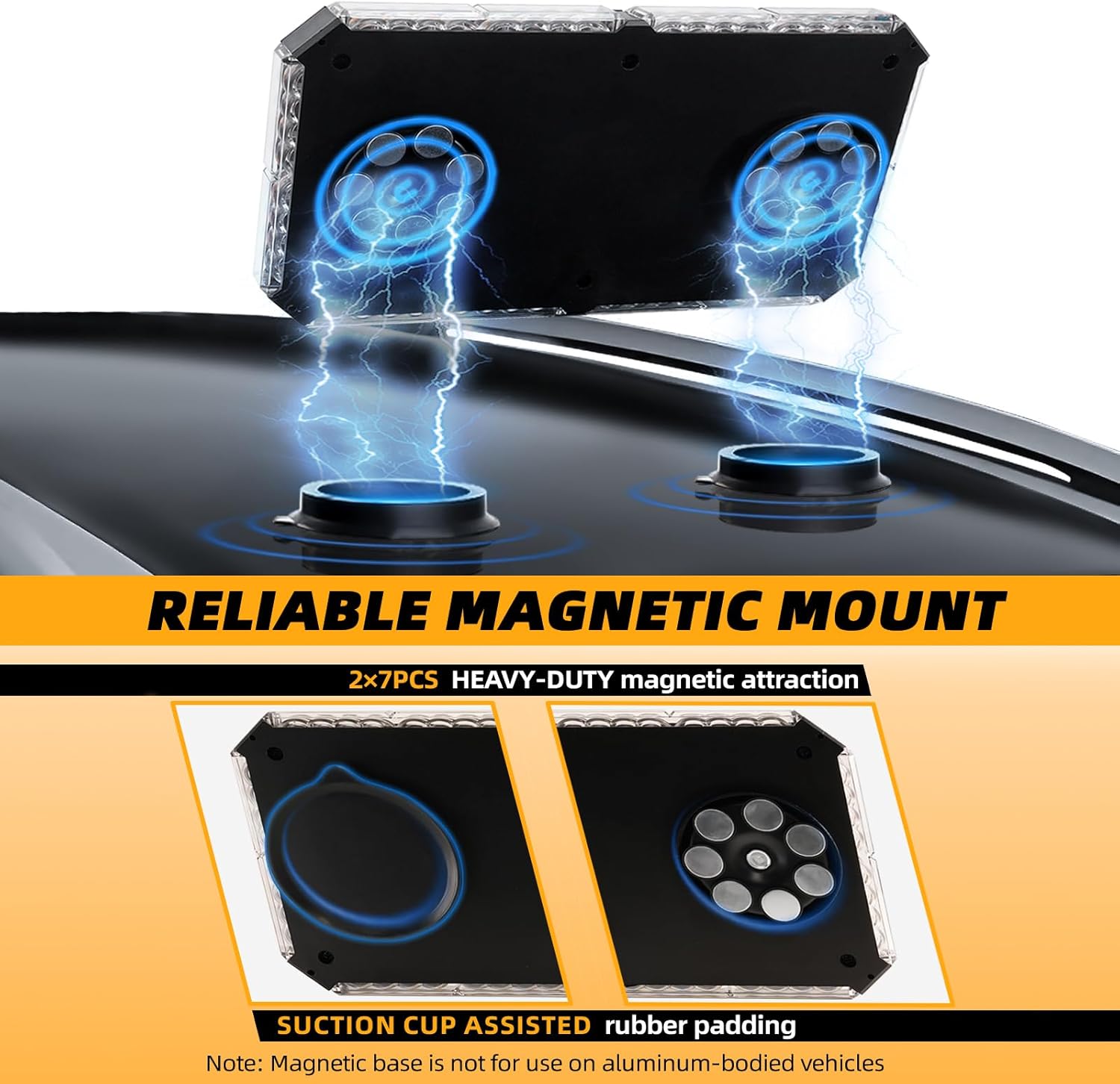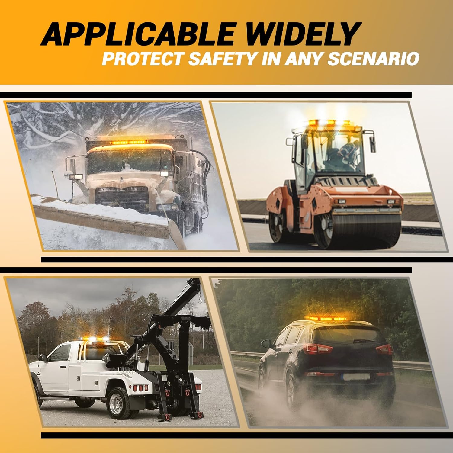 UPGRADE PC LENS MODULE – The rooftop strobe light bar has 48 high-intensity LEDs. 200% brighter than a standard LED strobe light, bright enough to be seen more than 2000ft in distance. It is even visible during daytime conditions, Brighter and more effective than standard LED strobe lights