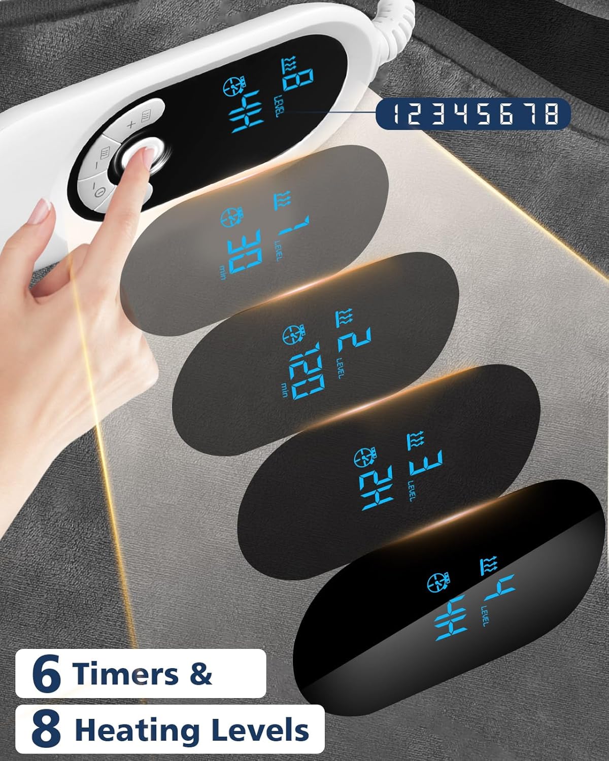 🔥【CUSTOMIZABLE TEMPERATURE & AUTO-OFF TIMERS】Tailor your comfort with 8 temperature settings (95°F/35°C to 158°F/70°C) and 6 timer options (30min, 60min, 90min, 120min, 3H, 4H) for energy-efficient use. The LED controller on this electric foot warmer makes adjustments effortless, while the auto shut-off feature prevents overheating, ensuring safety and peace of mind during extended use as an under desk foot warmer