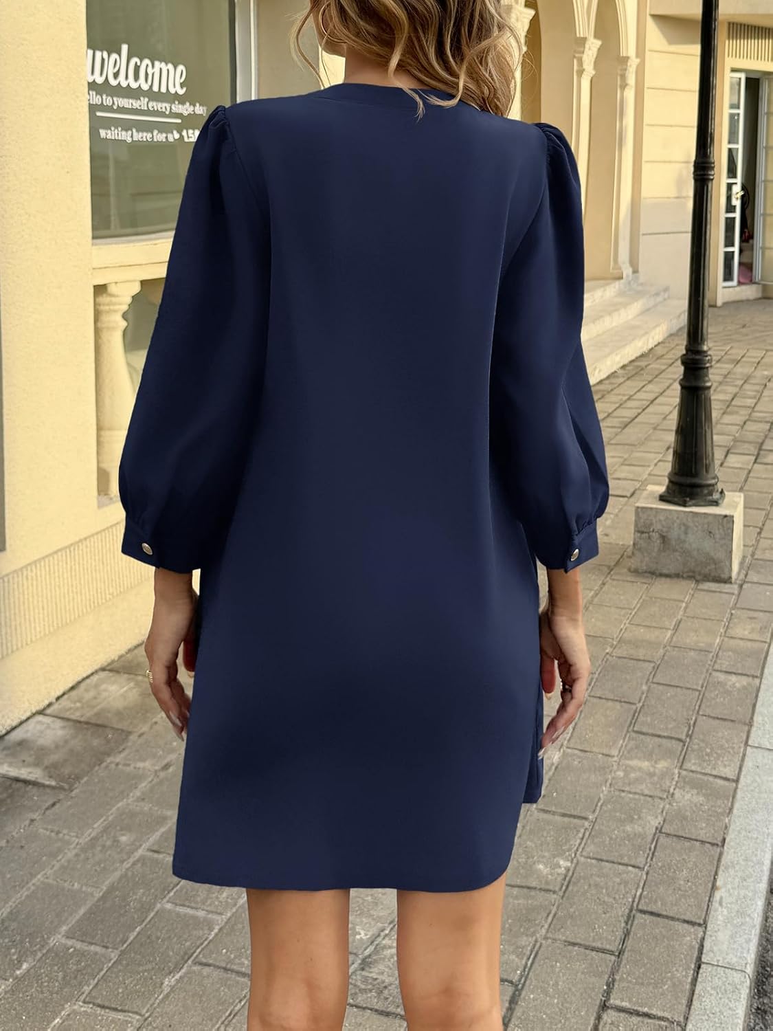 Wenrine Womens 3/4 Puff Sleeve Elegant Dress Button