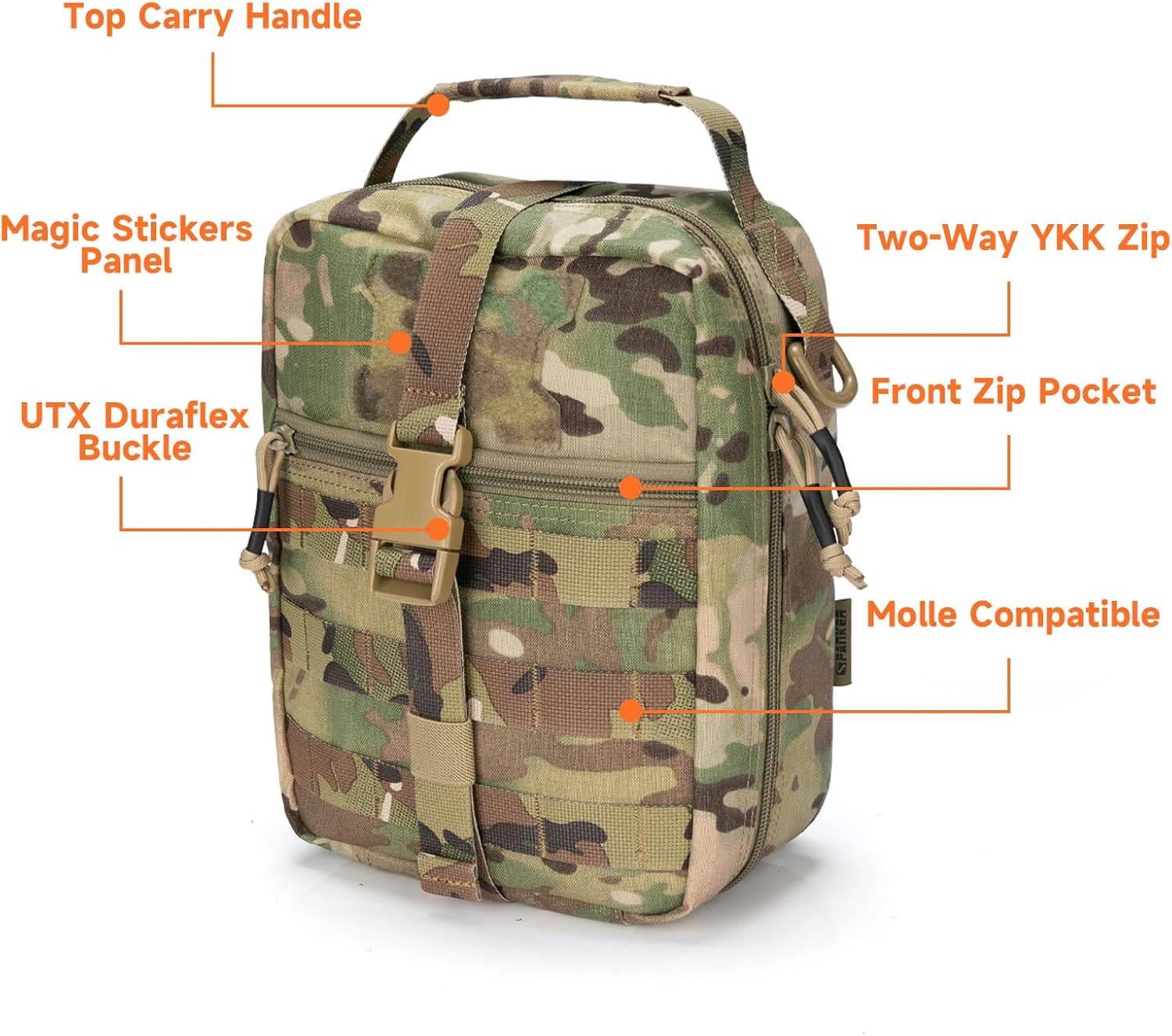 【PREMIUM QUALITY】 The IFAK Pouch is made of high-quality 500D AMERICA MULTICAM Cordura Nylon, which is tear-resistant and water-repellent, providing excellent protection for your first aid supplies.