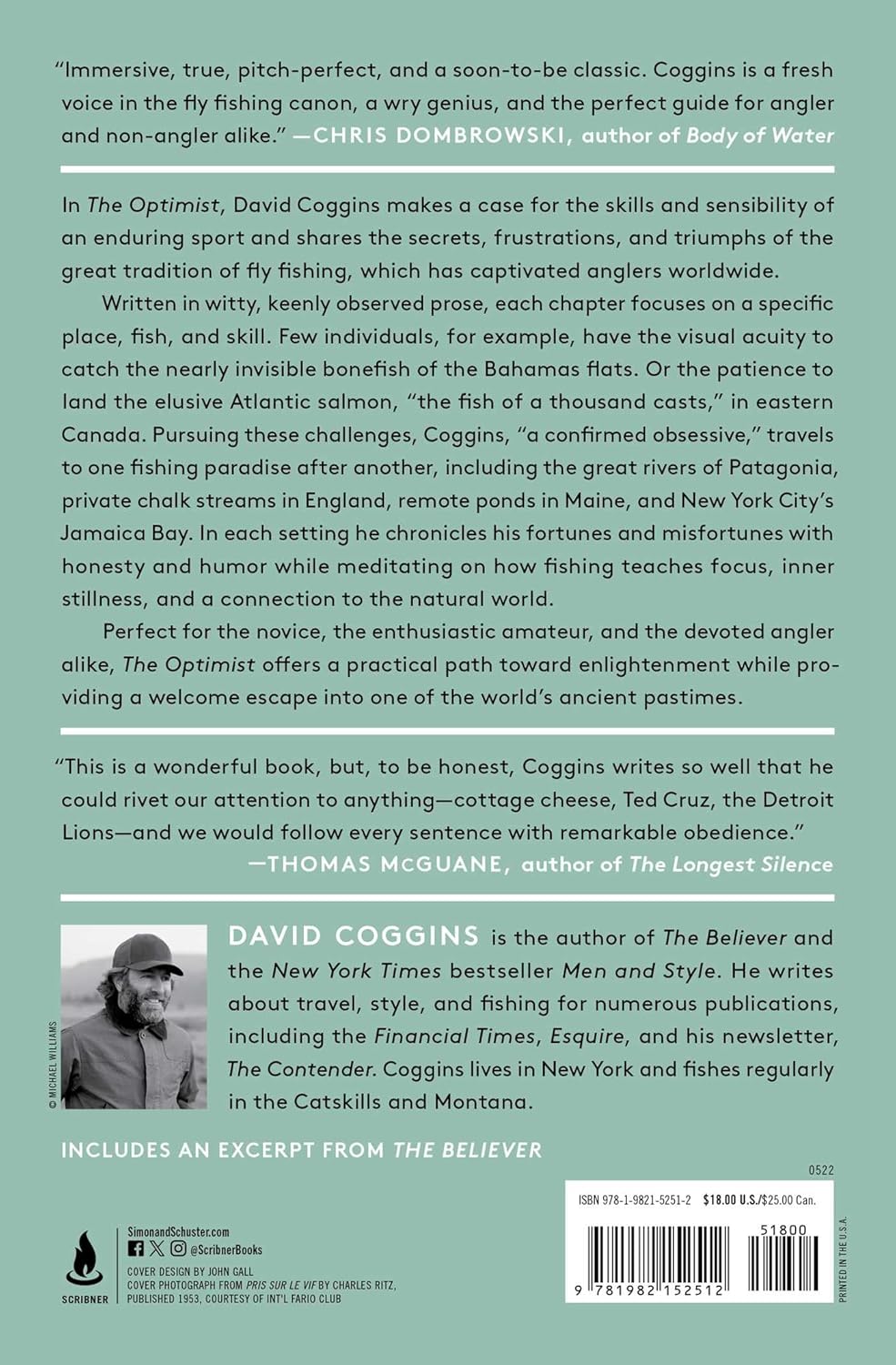 In The Optimist, David Coggins makes a case for the skills and sensibility of an enduring sport and shares the secrets, frustrations, and triumphs of the great tradition of fly fishing, which has captivated anglers worldwide.
