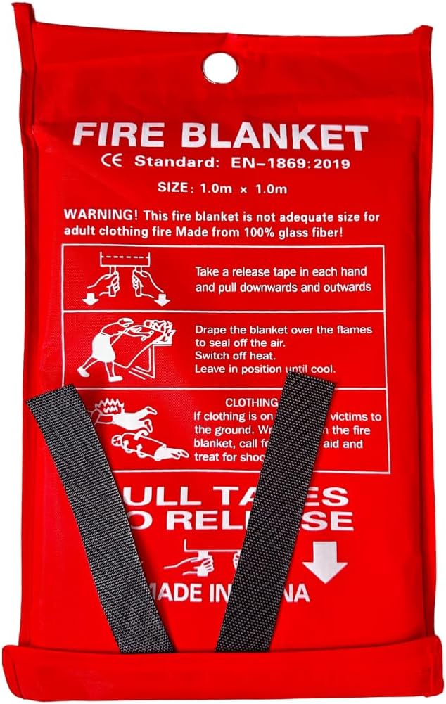 Emergency Fire Blanket is Made of Fiberglass Which is Designed to extinguish small fires by smothering the flames.