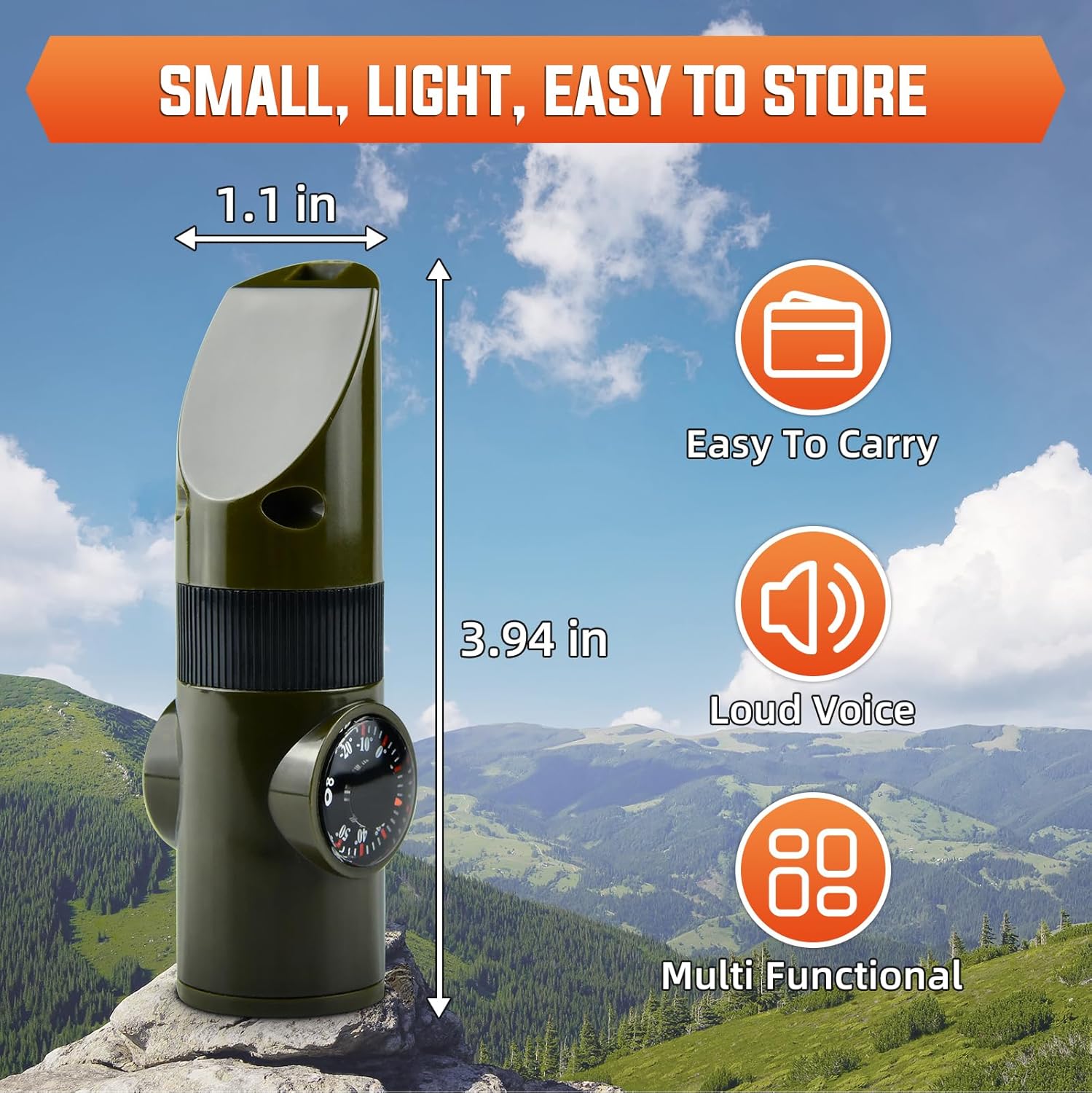 【Wide Range of Uses】Anybody interested in adventures, hiking trips or camping events needs this 7-in-1 outdoor multifunctional safety whistle as birthdays best gifts for men, husband dad or boy scouts friends and preparation for the next Boy Scout March and improve outdoor skills