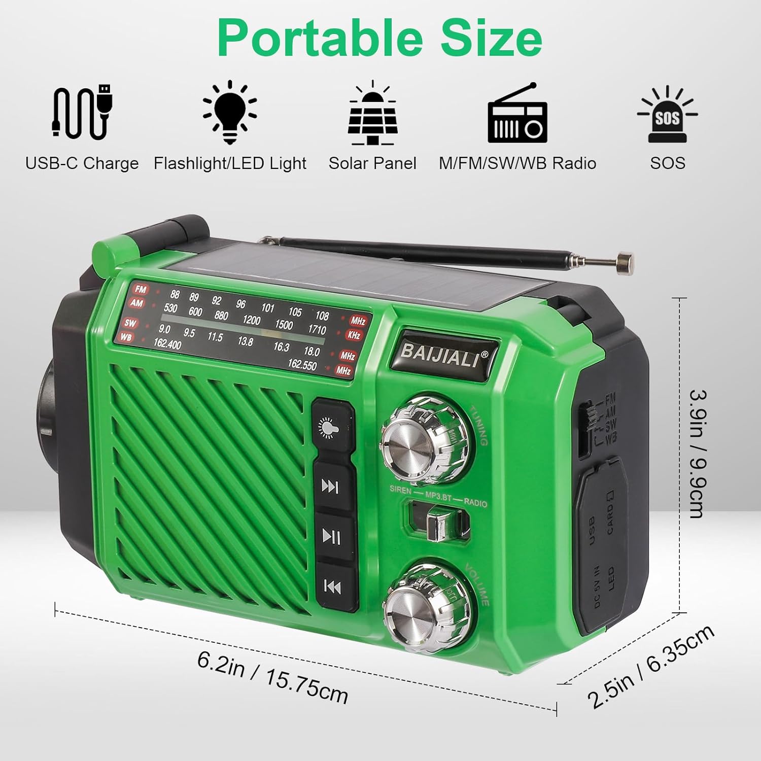 【Your Essential Hand Crank Emergency Radio & Power Bank】This portable radio is a lifeline in any crisis. Its built-in 2600mAh/9620mWh battery acts as a reliable emergency radio and power bank to keep your phone charged. The included USB-C cable offers modern, convenient recharging.