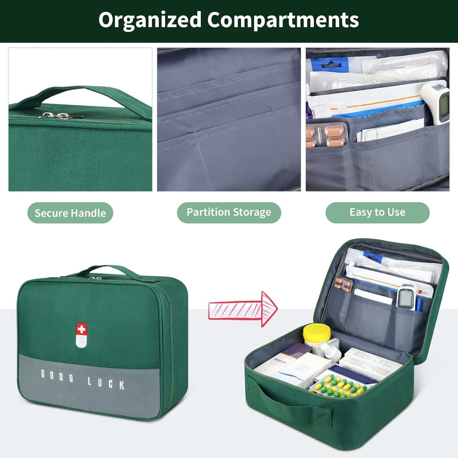 【 High Quality Material】: Made of 600D Oxford cloth fabric, the first aid bag has waterproof and moisture-proof functions, which is conducive to the preservation and carrying of medical supplies and medicines.