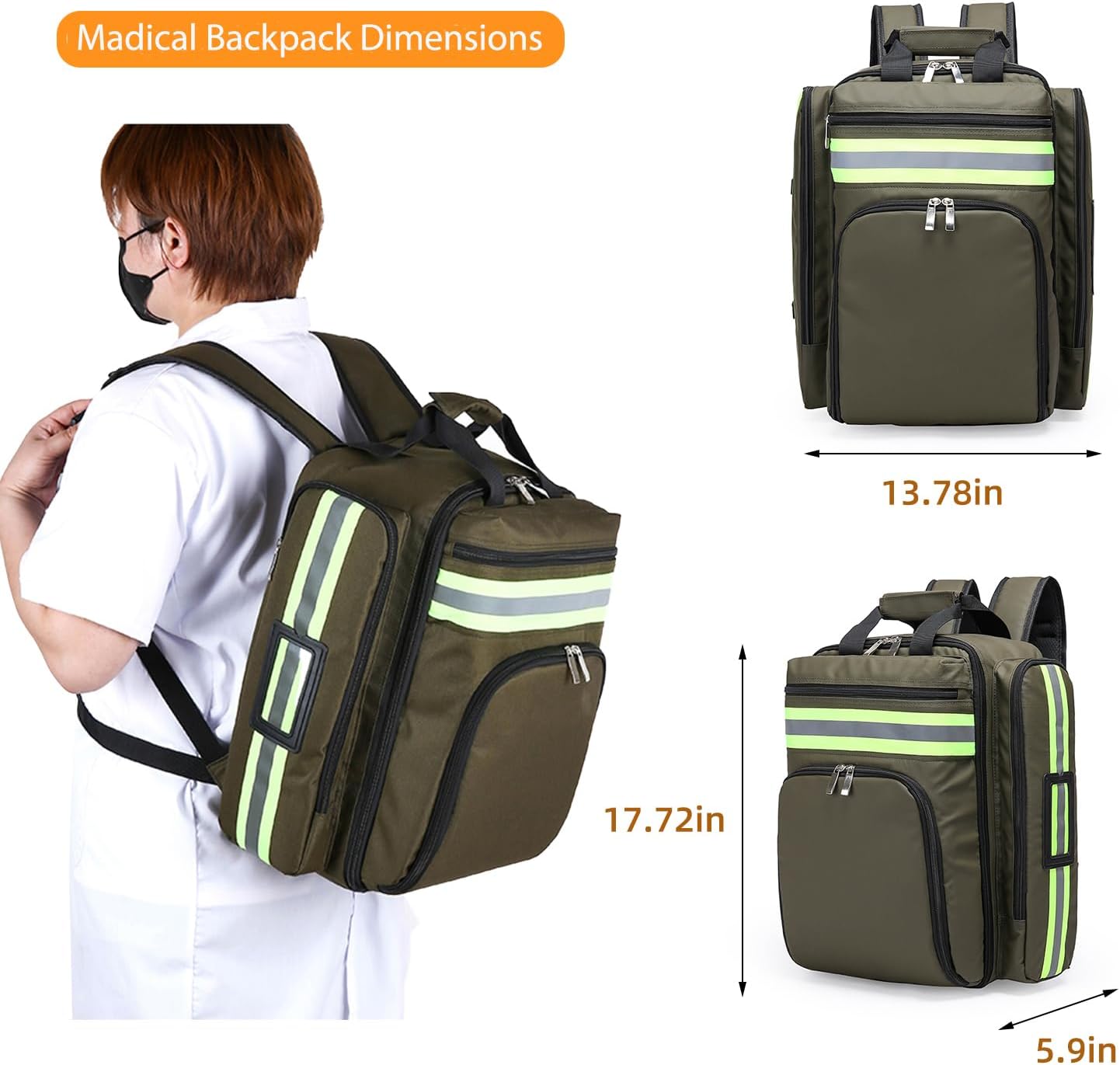 【PROFESSIONAL FIRST RESPONDER BACKPACK】Provides ample storage space for medical supplies and survival gear.With reflective strips and medical symbols to ensure easy identification in case of emergency