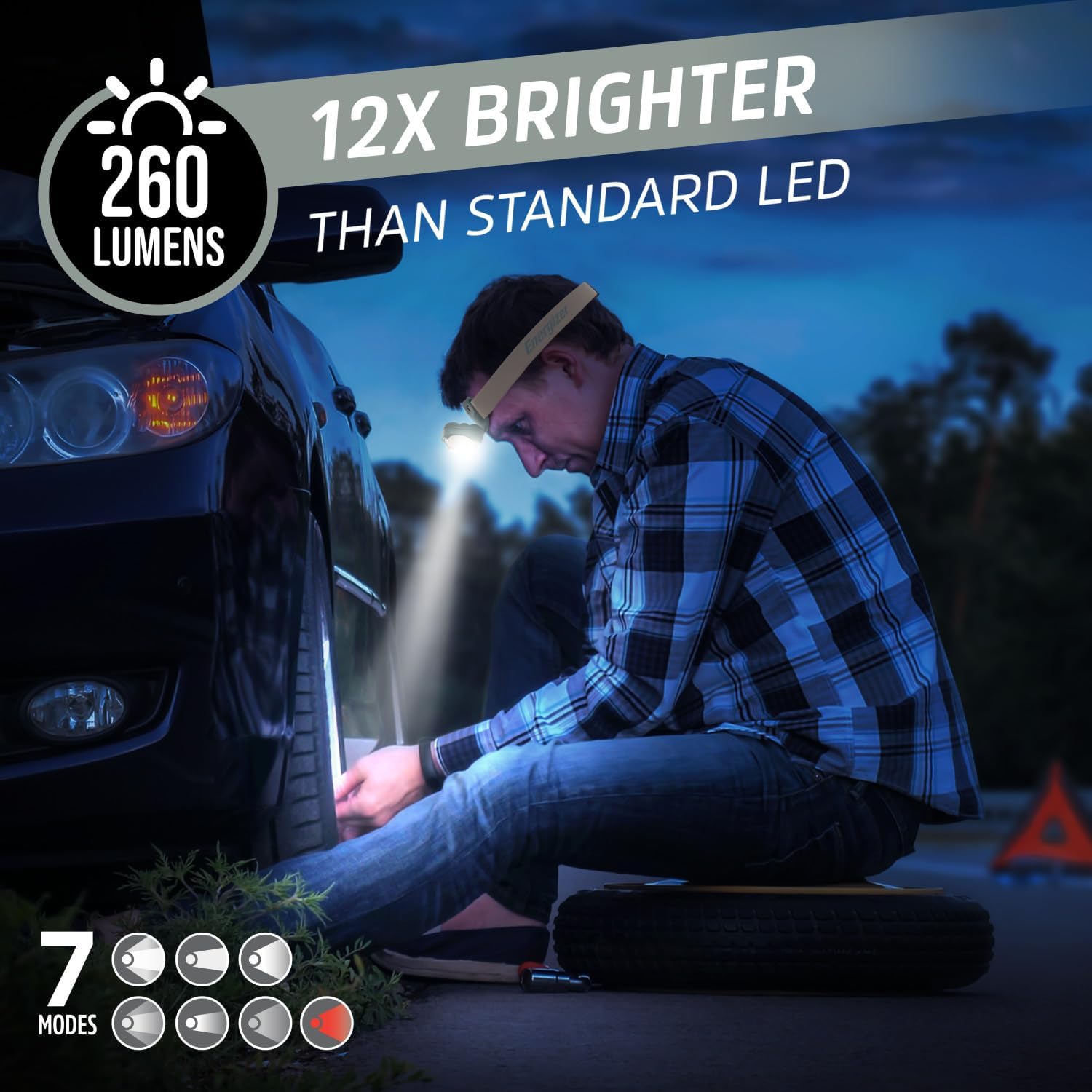 [Bright LED Light]: 260 lumen headlamp LED light has up to an 80-meter beam distance and is 4x brighter than the standard LED technology