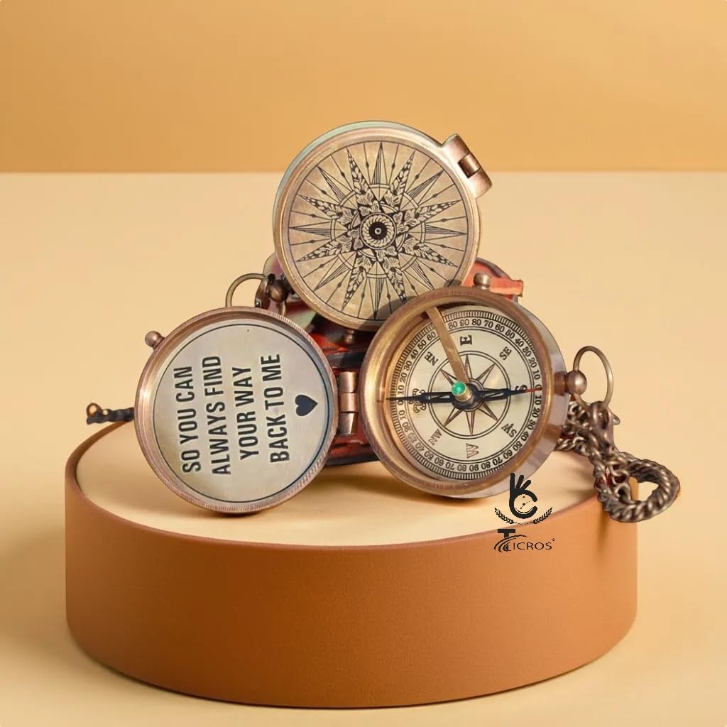 Romantic Engraved Compass – “So You Can Always Find Your Way Back to Me”, This handmade brass compass features a heartfelt message engraved inside the lid, making it a perfect romantic gift for a loved one. Whether it’s your husband, wife, boyfriend, girlfriend, son, or daughter, this sentimental phrase will always remind them of your love and guidance. Ideal for anniversaries, Valentine’s Day, weddings, and long-distance relationships.