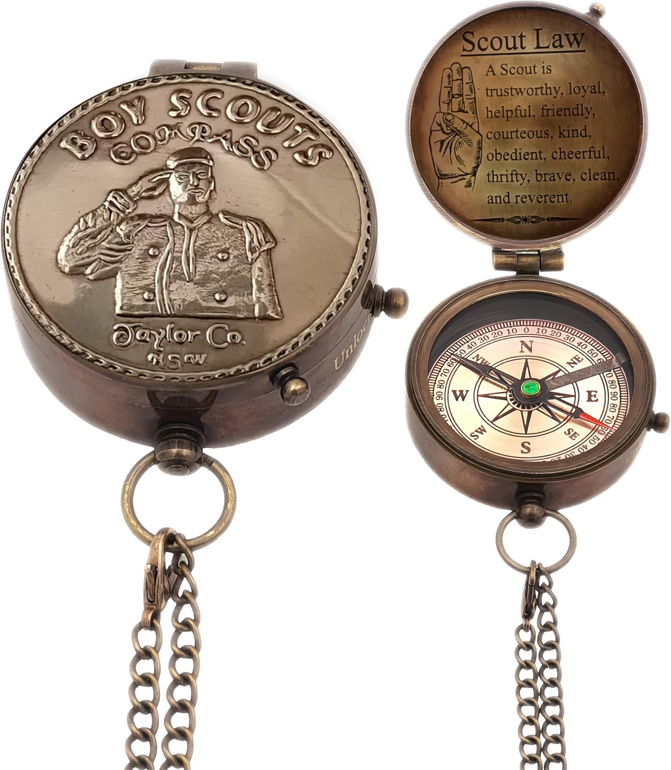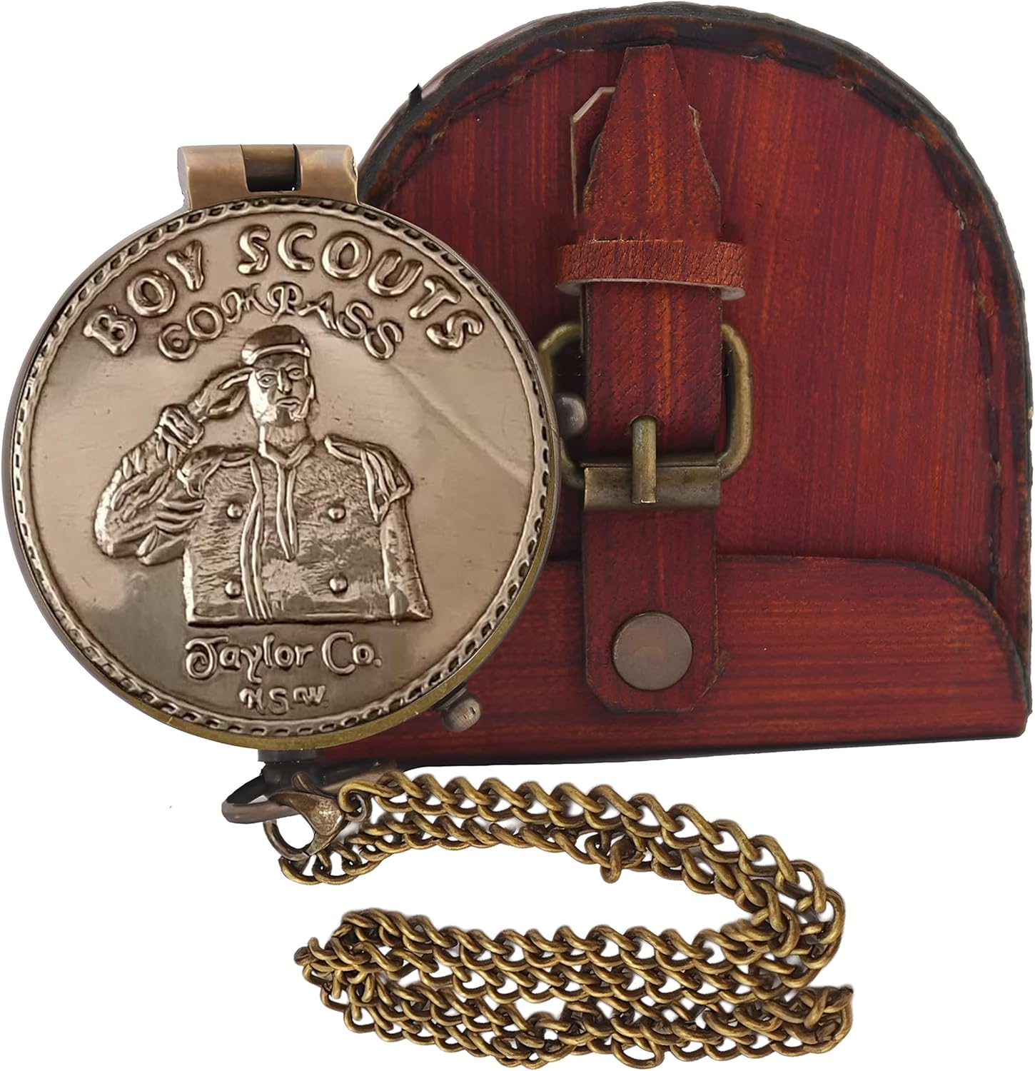 Compass Size : 2 ” inch / Free Leather case and brass chain best gift for boy scout