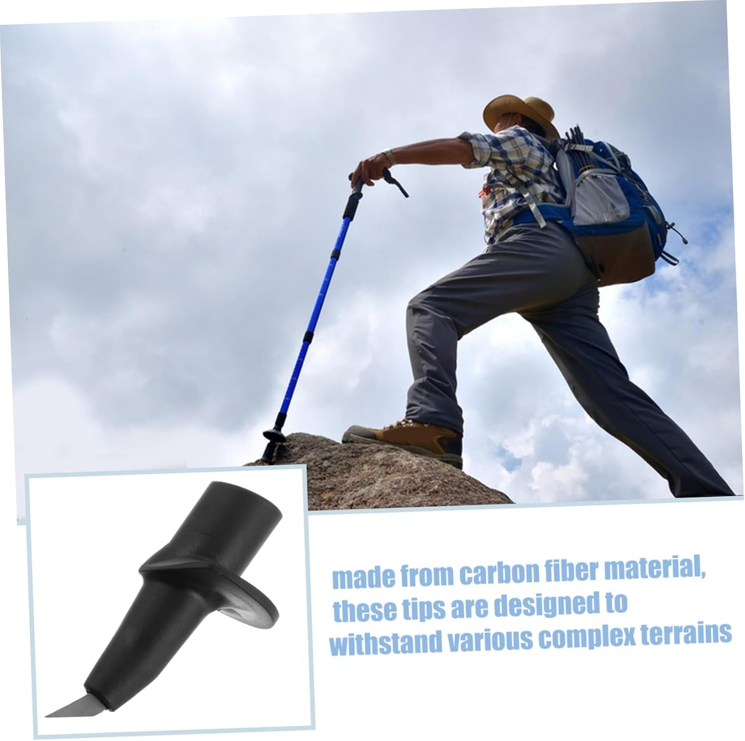 Versatile Tip: This Universal Ski Pole Tip Carbon Fiber the Trekking Poles category combines ski and functions, delivering enhanced grip and stability across varied outdoor terrains to support confident hiking and trekking