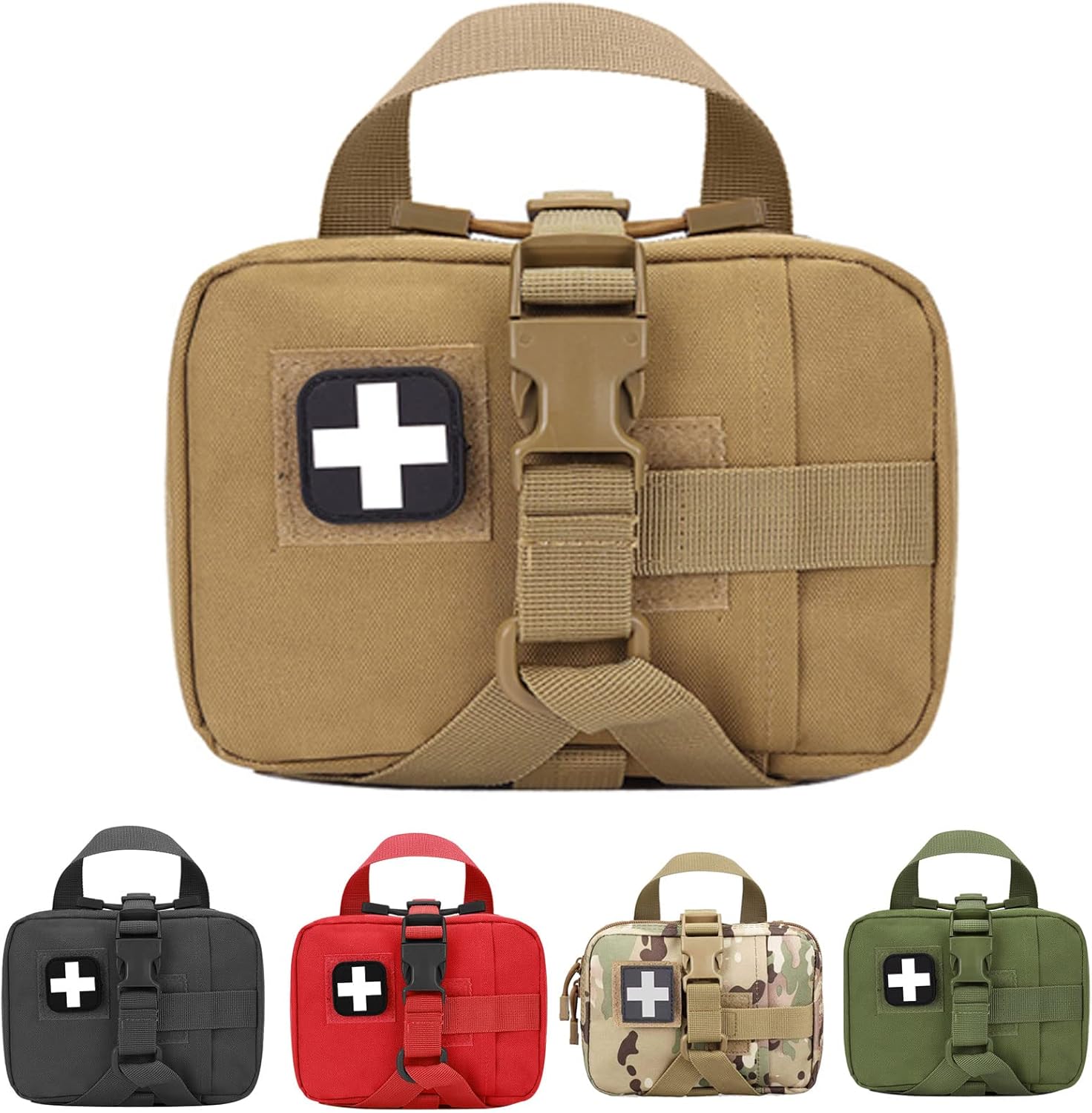 ☺HIGH QUALITY & FLEXIBILITY: Our molle first aid pouch empty is made of 900D polyester material, which is durable, has better tear resistance and water resistance, better protects the outdoor emergency supplies you need, and is specially designed for tough outdoor environment.Let our medical pouch give you more assistant with your outdoor activities.