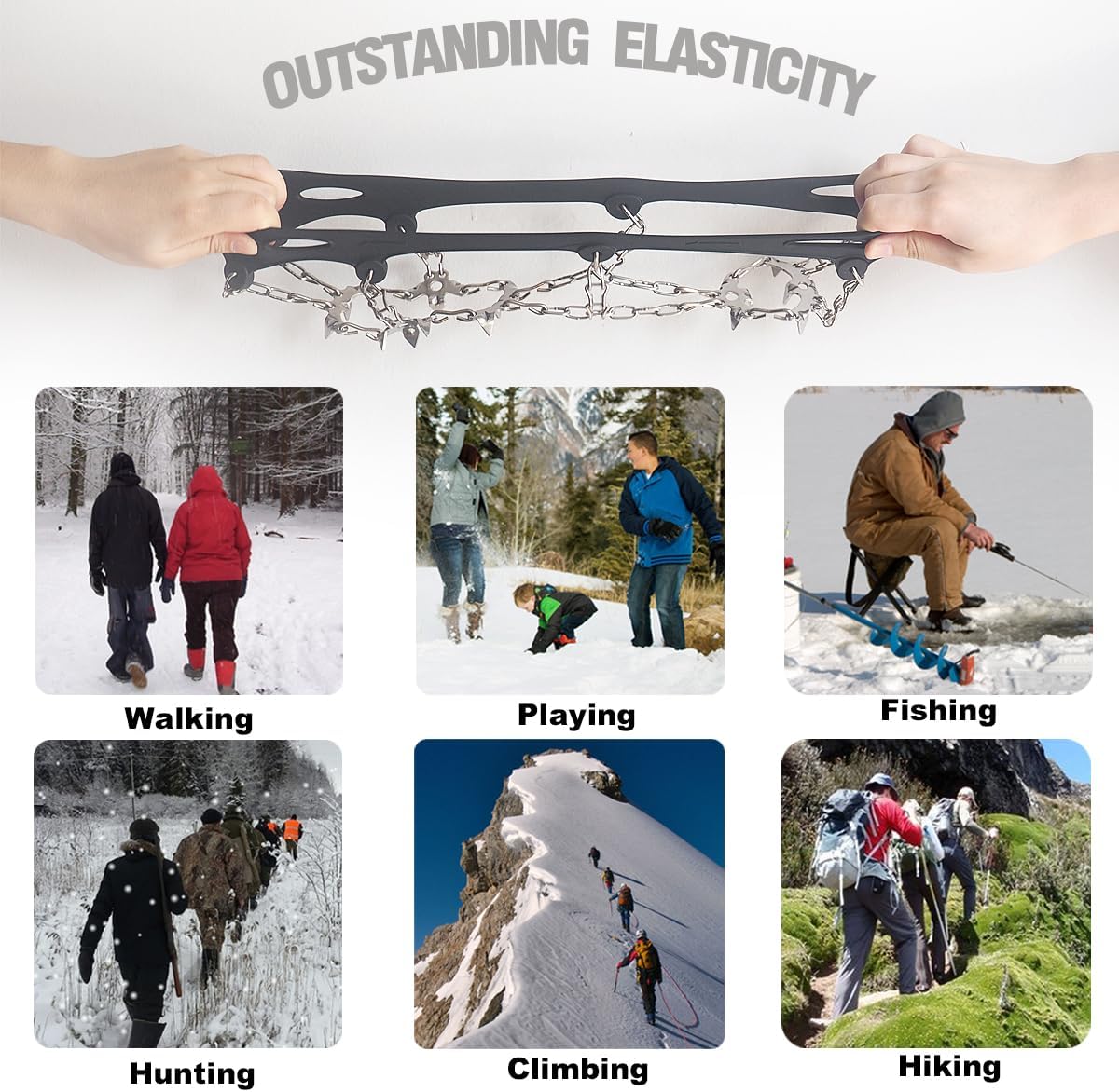 WIDELY USED:Suitable for both male and female of any age of teenagers,adult,elders.Suitable for Outdoor Ice And Snow,hiking angled terrain,icy roads,ice driveway,dangerous sections of trail (ice covered boulders,woods ice mud,etc.)Great for winter trail running,hiking,and ice fishing.