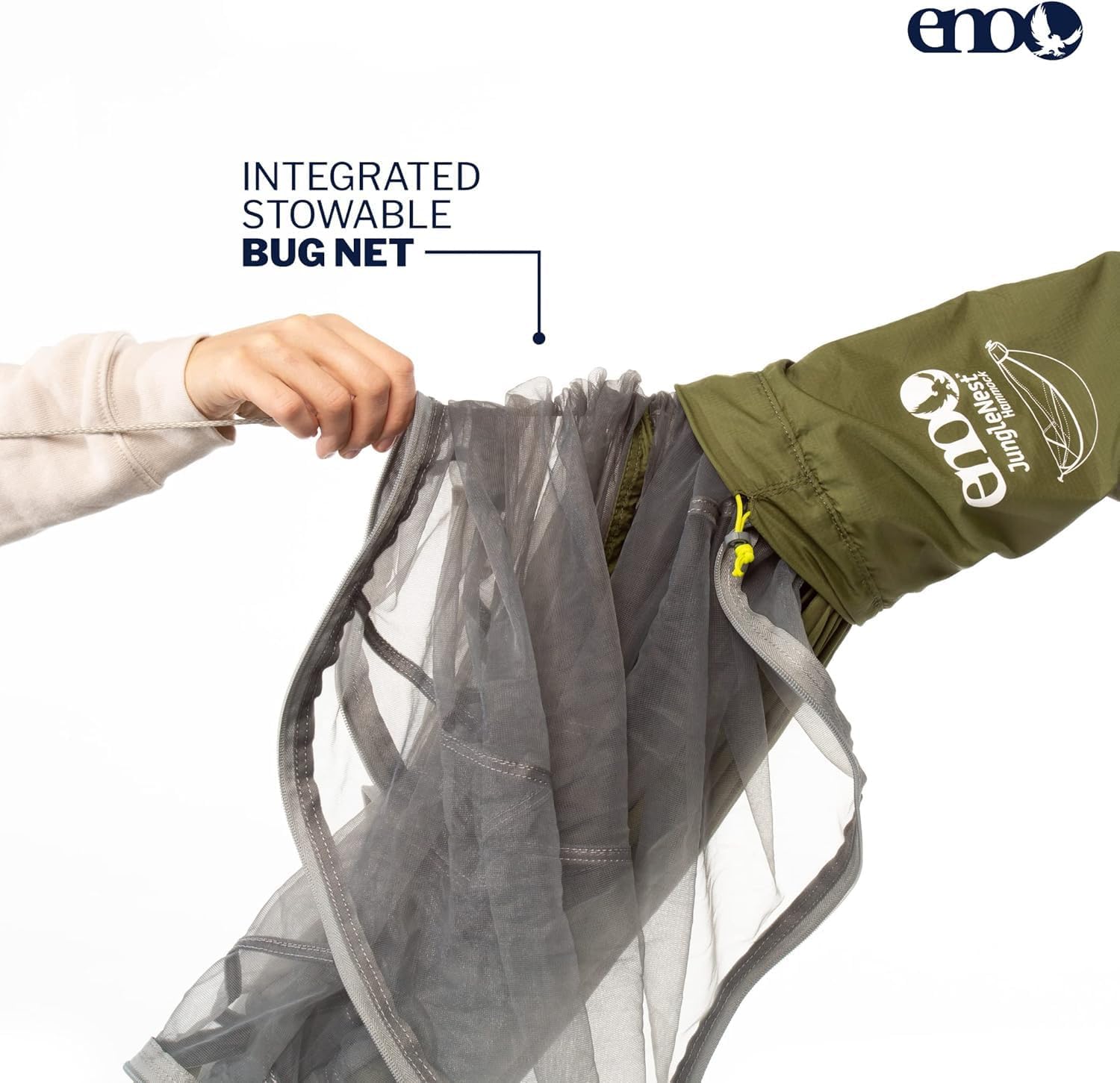 JungleNest hammock: Complete hammock with super-fine SkyWeave Lite Mesh net to keep bugs out; Made with durable and lightweight 40D Ripstop Nylon; Integrated toggles for connecting to Helios Straps