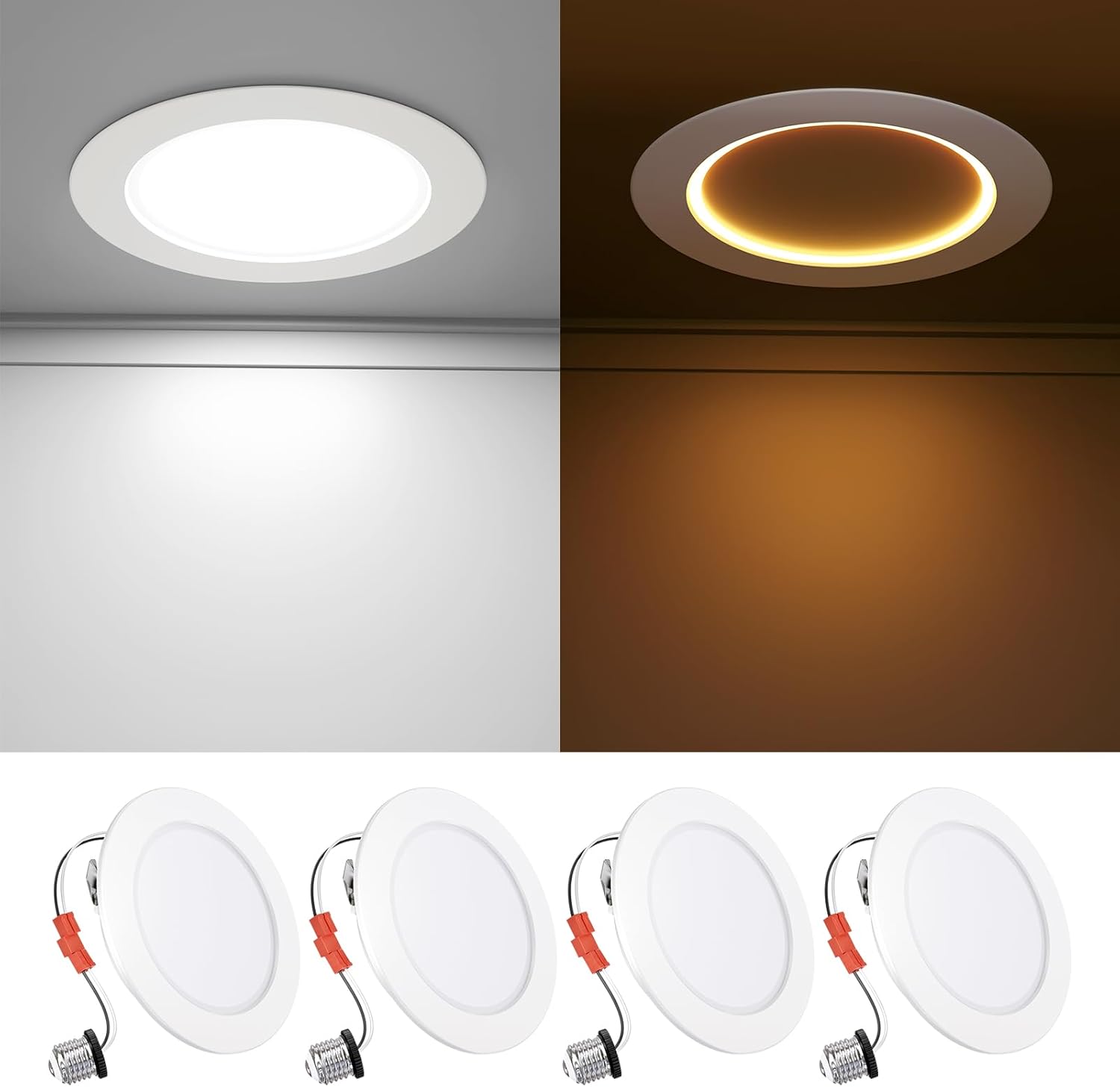 Two Modes in One Light: Ensenior 4 inch LED can lights with night light can provide two modes in one light, which can be switched by wall switch-2700K night light mode and 5CCT downlight mode; The nightlight mode provides 2700K golden warm color temperature, creating a cozy, warm and comfortable ambience to help you fall asleep at night.