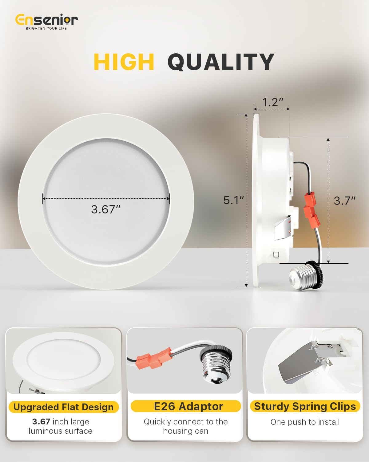 Reliable Product and Service: Ensenior LED can lights with night light are built with strong trim and body, and come with special heat dissipation and insulation designs for longer lifespan and better fire-proofing. Our retrofit can light with night light are listed by FCC, IC rated and damp-rated, ensuring top security for your family. Besides, Ensenior offers a 5-year coverage and 12-hour prompt after-sales service, standing firmly behind our products and ensuring your satisfaction.
